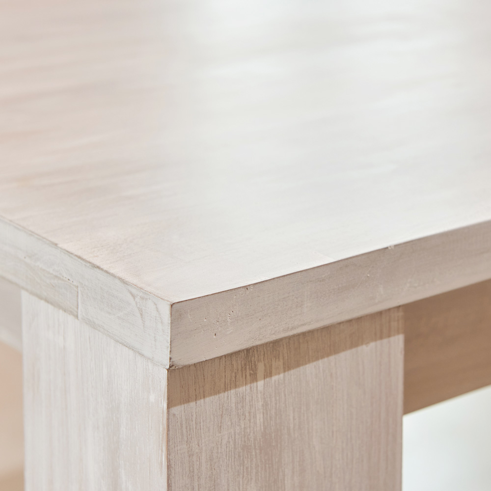 Stół jest ręcznie wykonany z naturalnie suszonego drewna, żywego materiału, który z czasem ulega naturalnemu ruchowi. Wszelkie drobne pęknięcia i sęki są nieodłączną cechą drewna i mogą się pojawić z czasem.