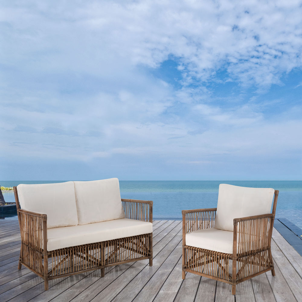 Ta rattanowa sofa to skarb naturalnego ciepła i wygodnej elegancji . Tkana struktura rattanu, bogata w rustykalny urok i fachowo wykonana ręcznie, zapewnia nie tylko trwałość i odporność na czynniki atmosferyczne , ale także ciepłą i przyjazną estetykę, która zachęca do relaksu. Grube i miękkie poduszki gwarantują niezrównany komfort, idealny do cieszenia się chwilami spokoju na świeżym powietrzu.
