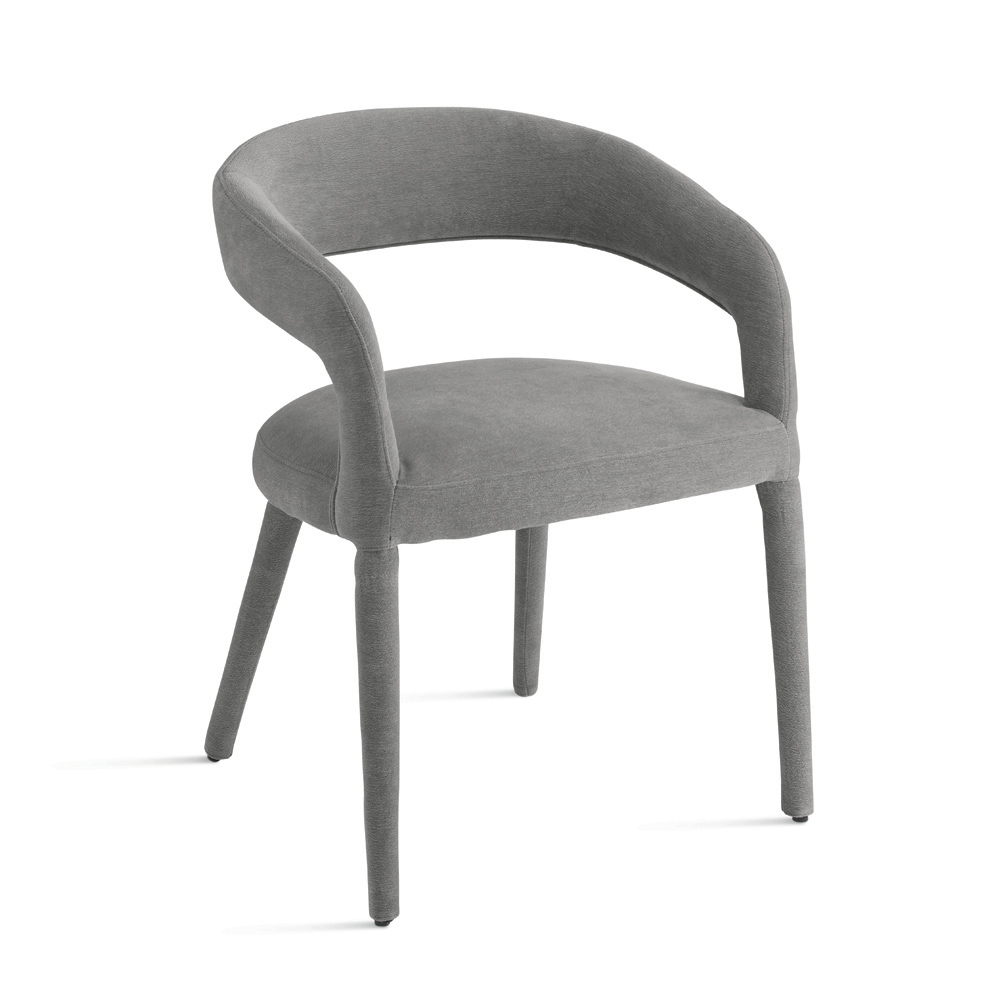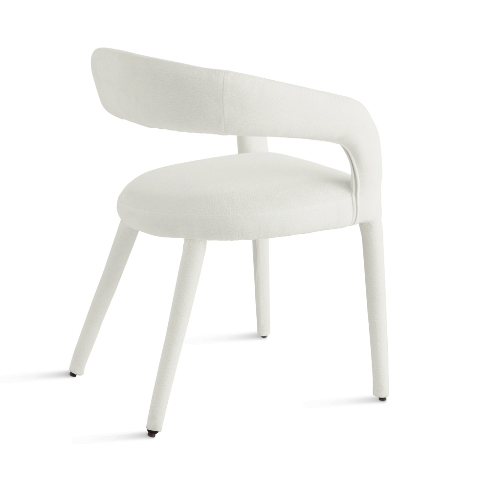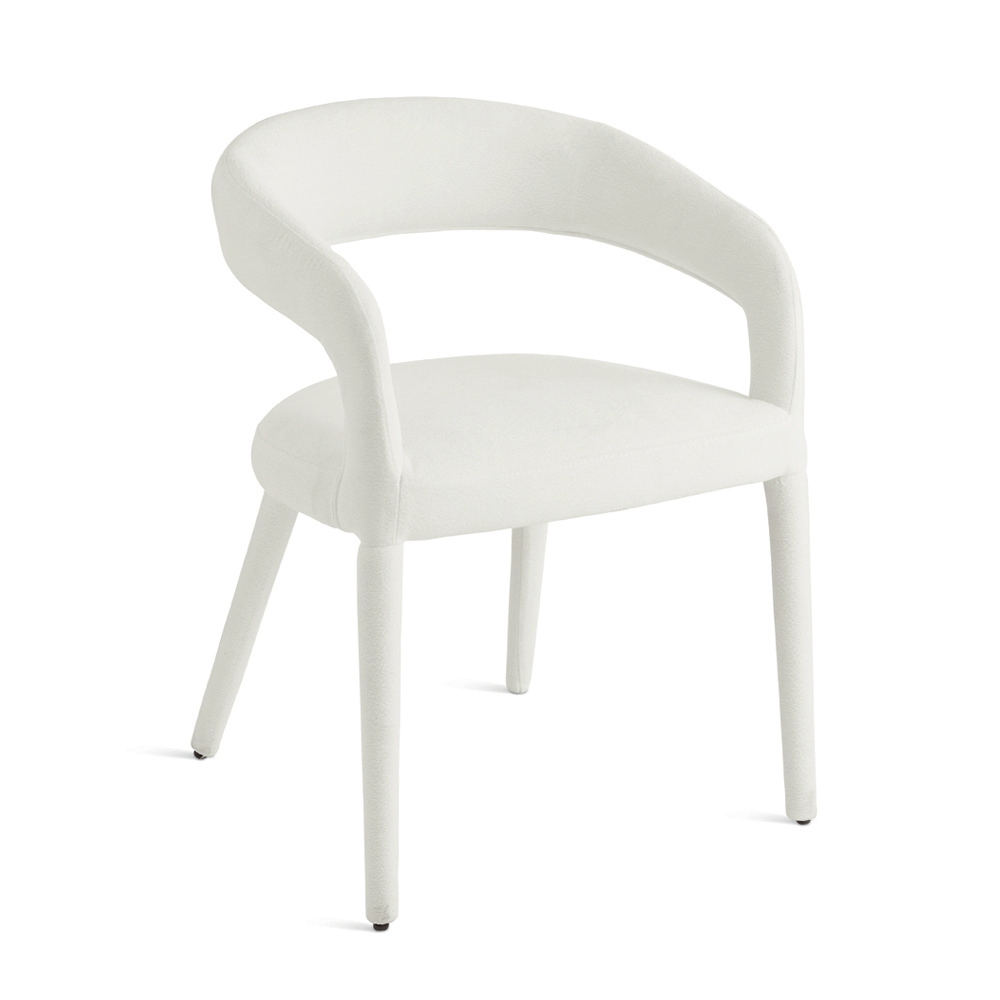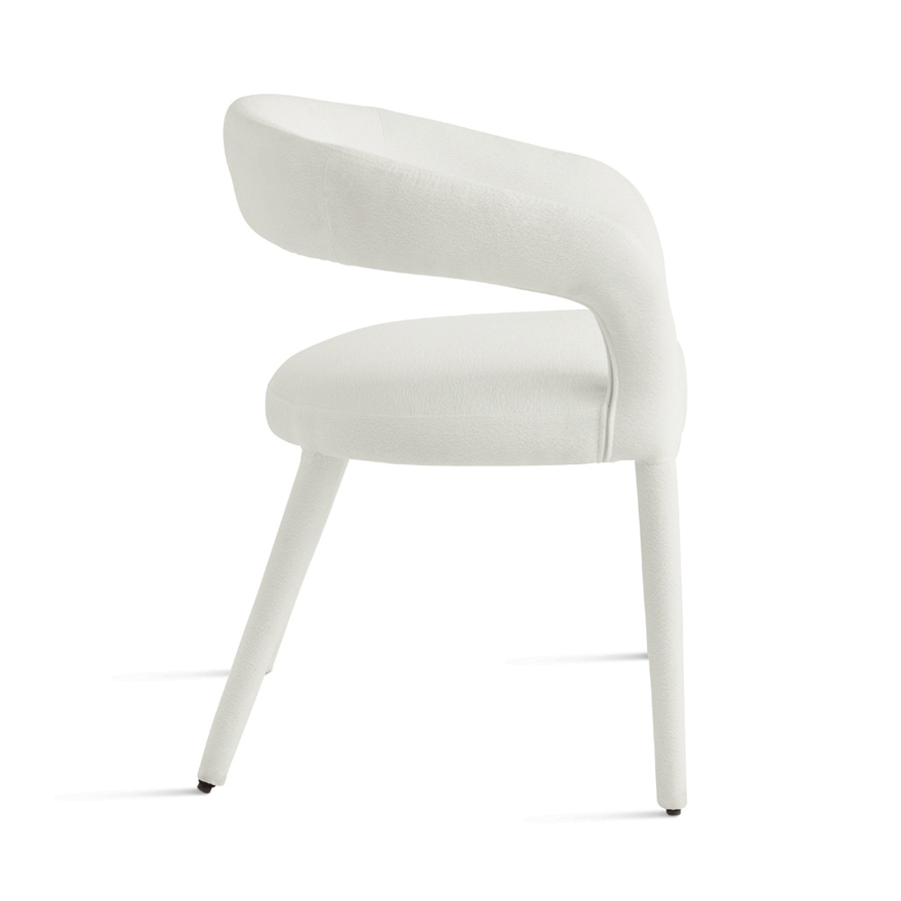 Elegancki zestaw dwóch tapicerowanych krzeseł o prostym, nowoczesnym wzornictwie, idealny do stylowego wyposażenia jadalni , salonu lub przestrzeni towarzyskiej. Krzesło pokryte jest tkaniną bouclé , która całkowicie pokrywa siedzisko i ramę, tworząc harmonijną i wyrafinowaną sylwetkę.