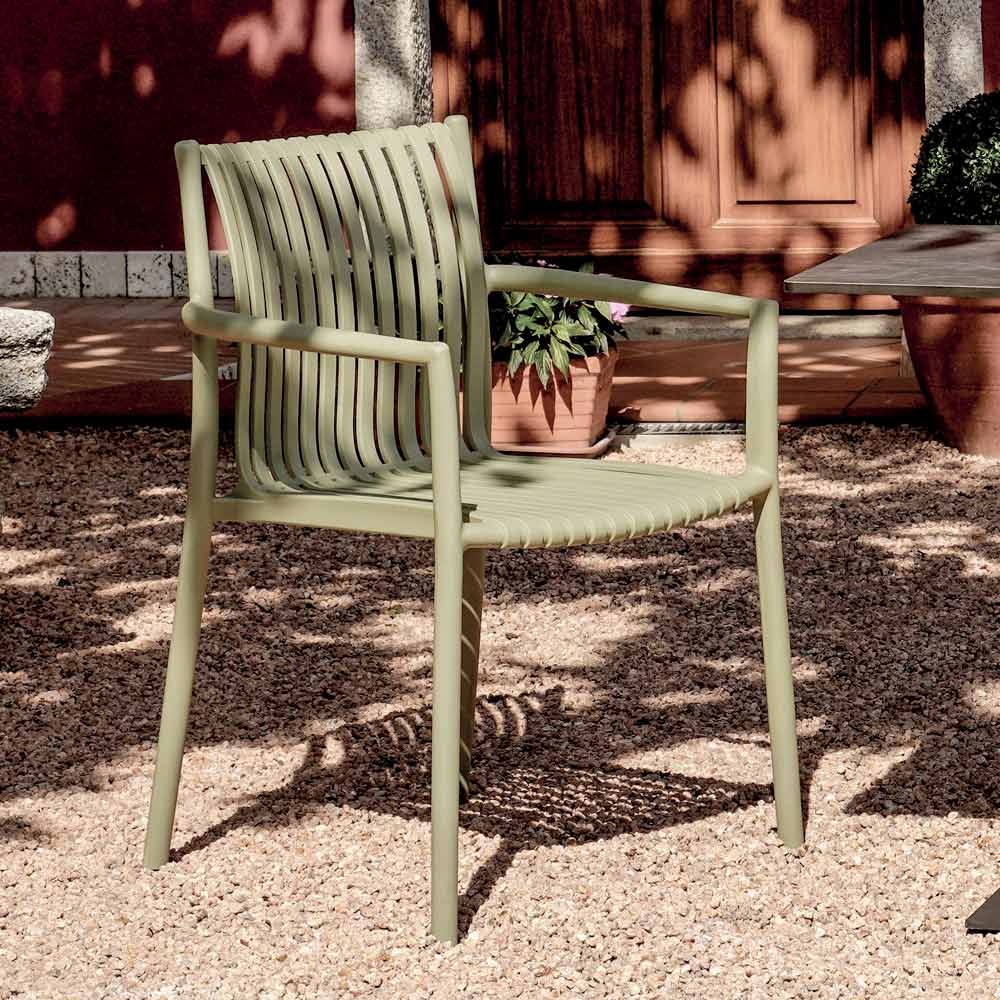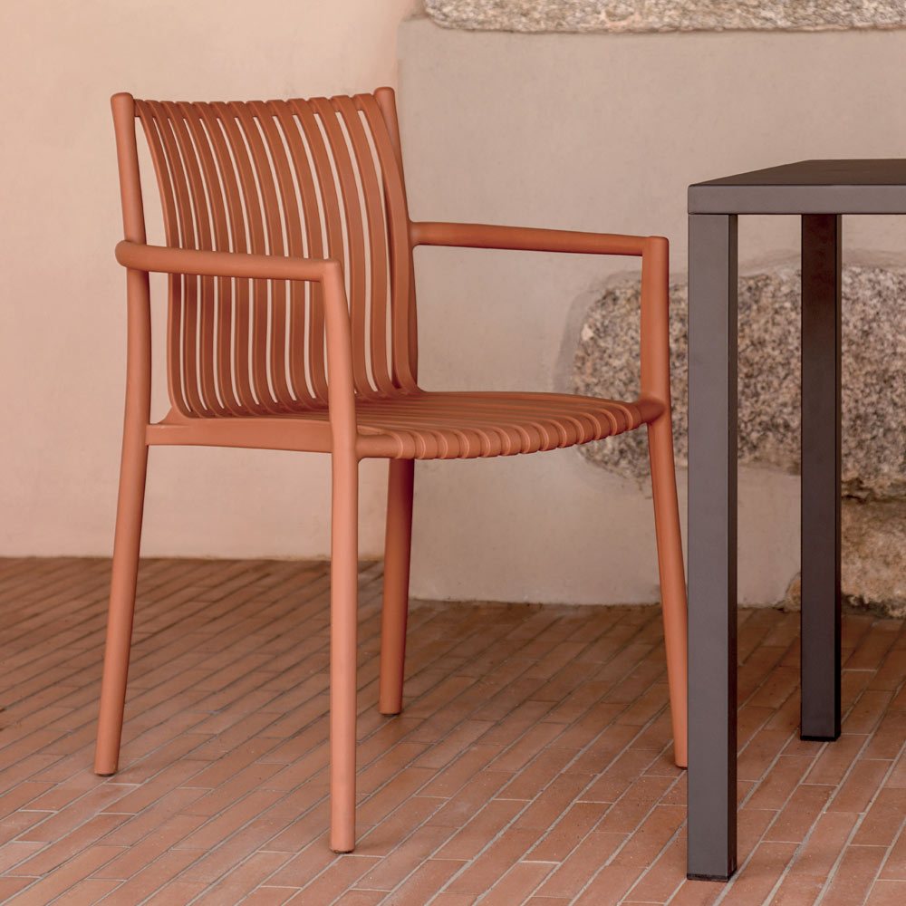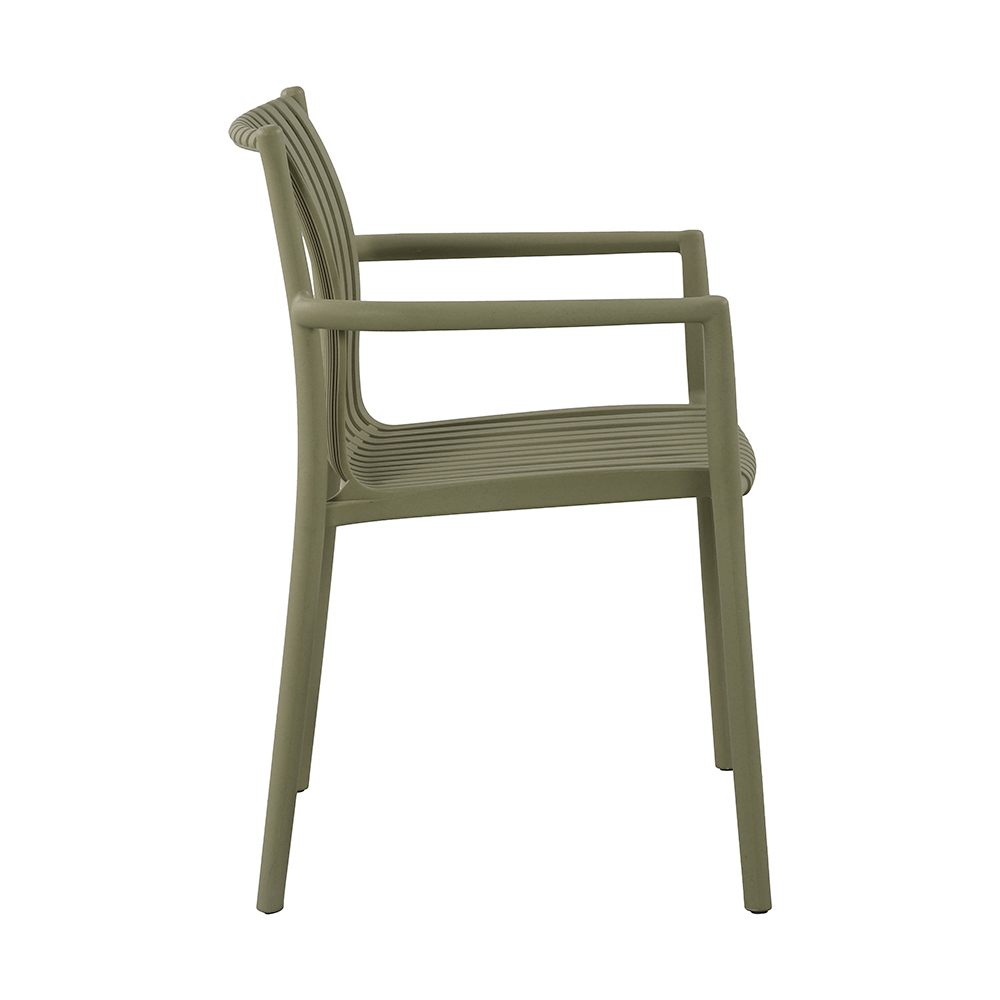 Materiał jest odporny na promieniowanie UV , co gwarantuje żywe kolory i niezmienioną powierzchnię nawet po długotrwałej ekspozycji na słońce. Dzięki nowoczesnemu, liniowemu wzornictwu krzesło z łatwością dopasowuje się do różnych aranżacji – od ogrodów po tarasy, a także przestrzenie biurowe, takie jak bistra i hotele.