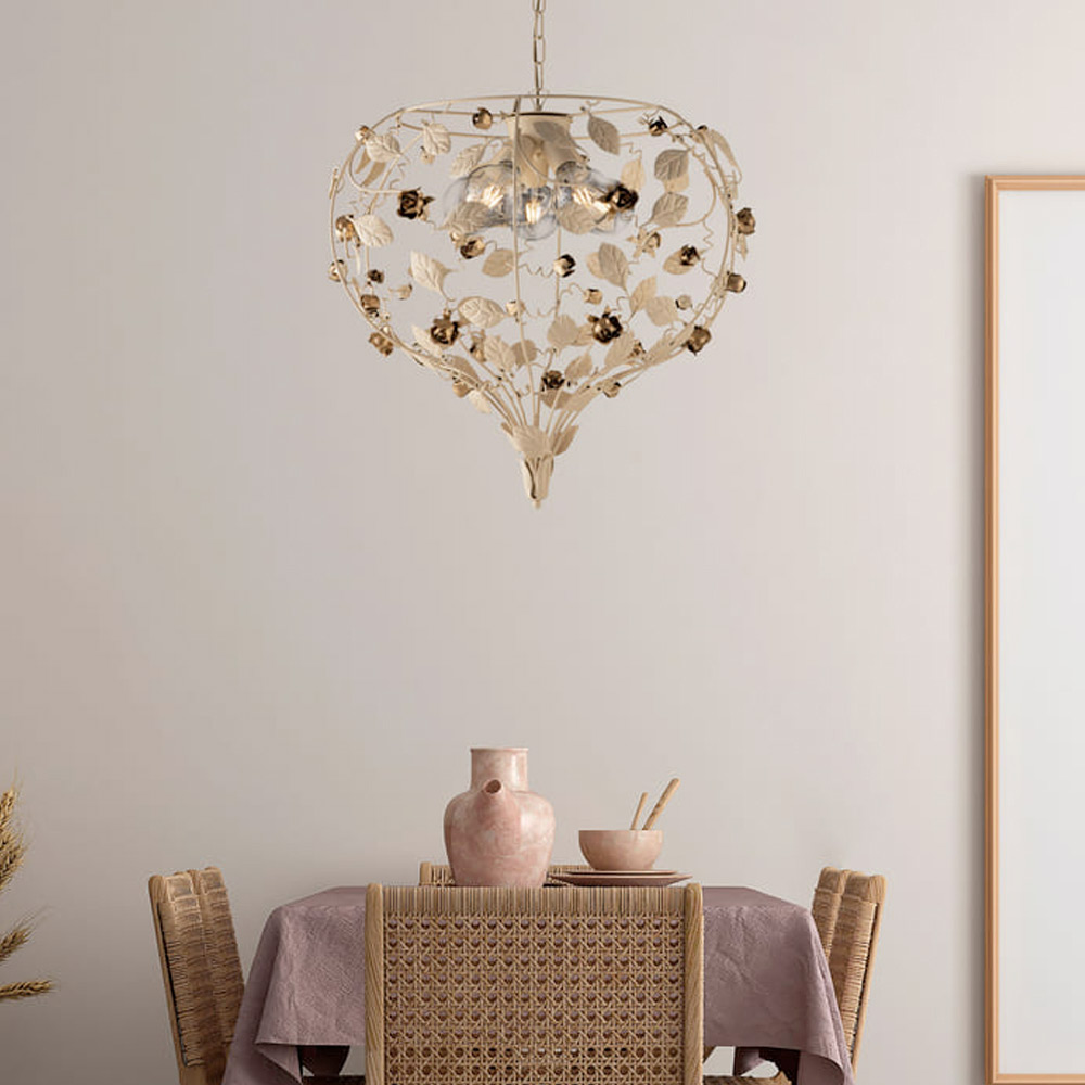 Dostępny w eleganckim wykończeniu Shabby White , jasnym i romantycznym, lub w ciepłej i szlachetnej wersji Ivory ze złotymi detalami , żyrandol ten naturalnie pasuje do eleganckich salonów, jadalni, malowniczych wejść i prestiżowych pomieszczeń biurowych .