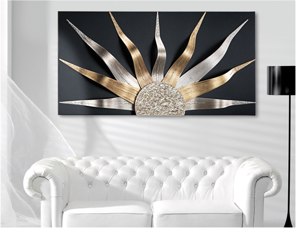 Przykładem może być obraz Petuniiby Viadurini Dekor z ręcznie zdobioną strukturą podwójnej litery L, z detalami z żywicy na materiale i centralnym elementem z reliefem i błyszczącym wykończeniem. W połączeniu z obrazem, romantyczny wieszak Appendirosa jest idealny w czarnej lakierowanej strukturze z trzema chromowanymi różami z reliefem, pięcioma czarnymi gałkami i błyszczącym wykończeniem.