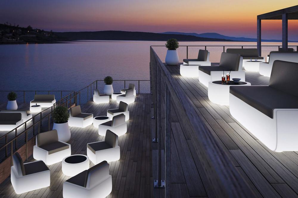 Te meble lub akcesoria są w większości wykonane z polietylenu , bardzo wytrzymałego i wszechstronnego materiału , wykonanego w wersji półprzezroczystej, aby umożliwić przejście światła do wnętrza diody LED, tworząc w ten sposób rozproszone i nastrojowe światło.