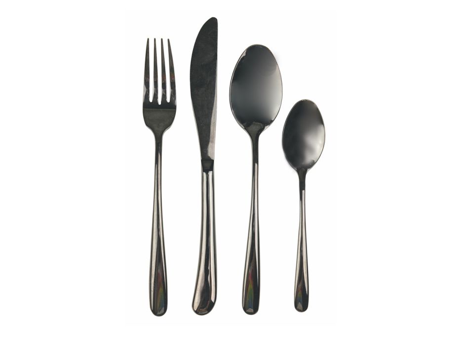 Błyszczący czarny zestaw sztućców ze stali Zaokrąglony wzór 24 sztuki - Drop