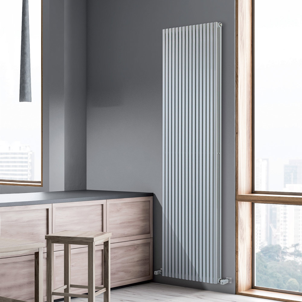 Grzejnik hydrauliczny ze stali węglowej z połyskującym, czysto białym wykończeniem, składający się z podwójnego szeregu pionowych elementów o przekroju kwadratowym 2 cm, przyspawanych do poziomych kolektorów o średnicy 3,5 cm, w całości wyprodukowany we Włoszech, z dołączonym zestawem do montażu na ścianie, zaworem odpowietrzającym i zaślepką . Cały proces produkcji odbywa się w fabryce niedaleko Treviso, zaledwie kilka kilometrów od Wenecji, gdzie jakość jest stałym celem . Jakość jest synonimem skrupulatnej dbałości o szczegóły i doboru najbardziej niezawodnych materiałów. W ten sposób powstają grzejniki o najwyższej czystości wzornictwa i funkcjonalności.