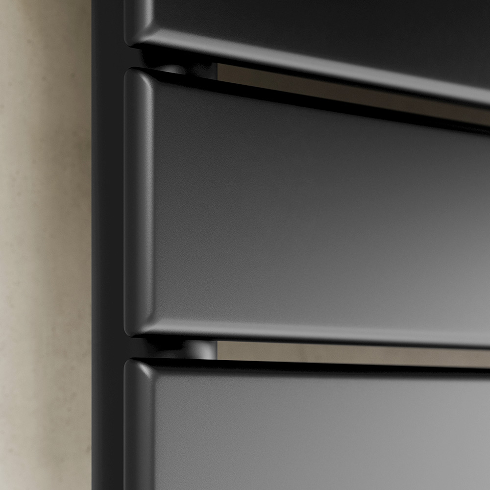 Ten czarny podgrzewacz ręczników reprezentuje czystą elegancję i wyrafinowanie w każdym szczególe. Jego nowoczesny design i czyste geometryczne linie dodają odrobinę współczesnego stylu do każdej łazienki, idealnie integrując się z różnymi stylami dekoracji, od najbardziej minimalistycznych do najbardziej odważnych.