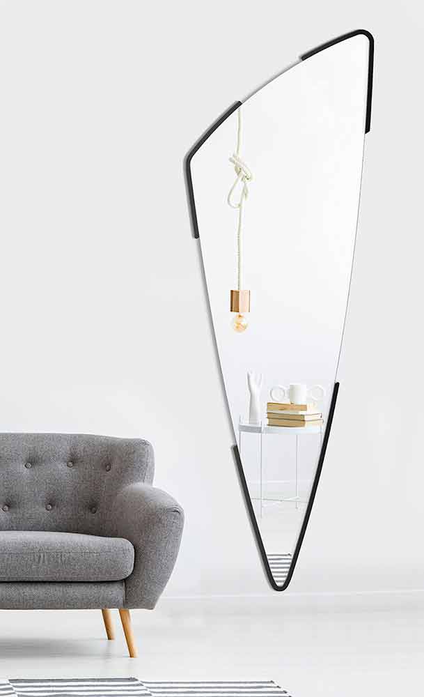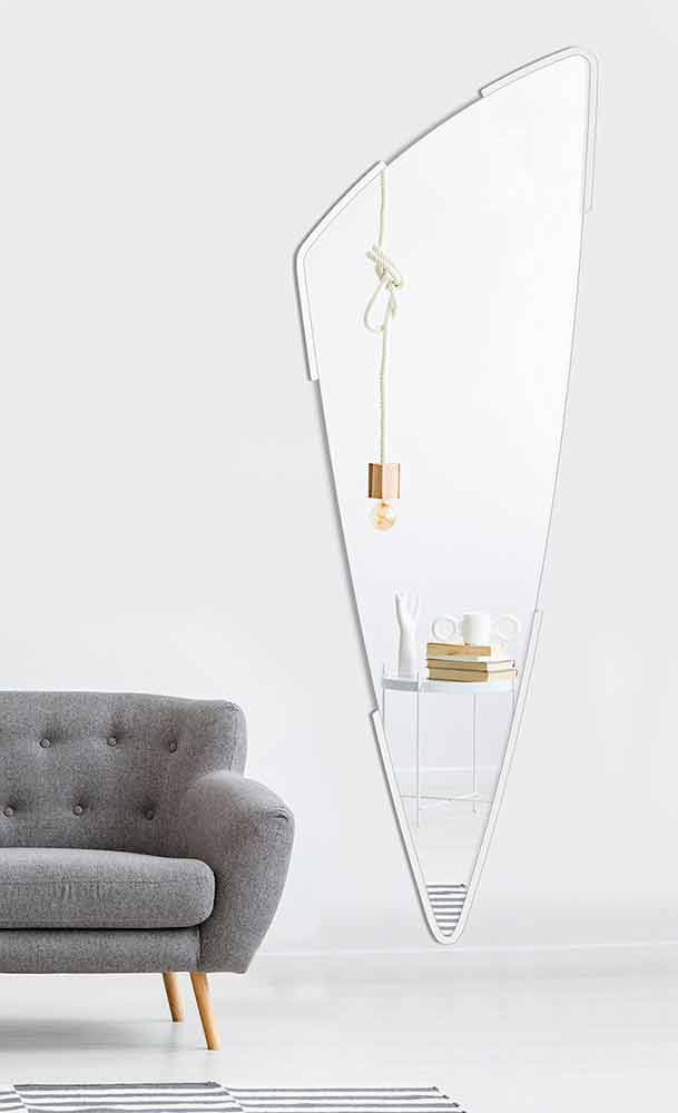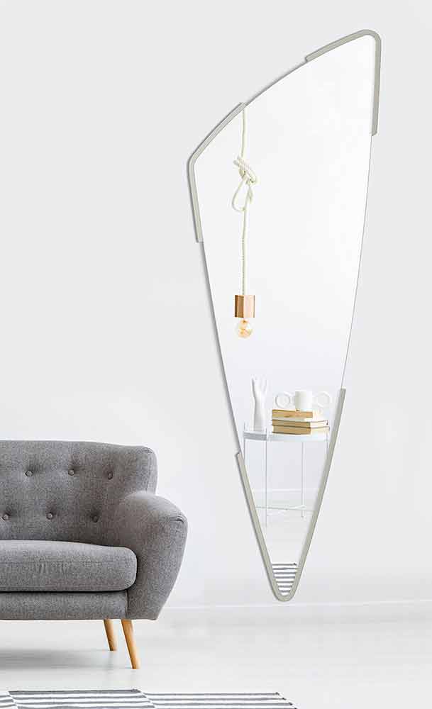 To stylizowane lustro ścienne o wspornikowym kształcie prezentuje eleganckie linie i nowoczesne kształty w połączeniu z wyrafinowanym lakierowanym wykończeniem, dając efekt o minimalnym i dekoracyjnym wpływie estetycznym w niepowtarzalnym stylu.