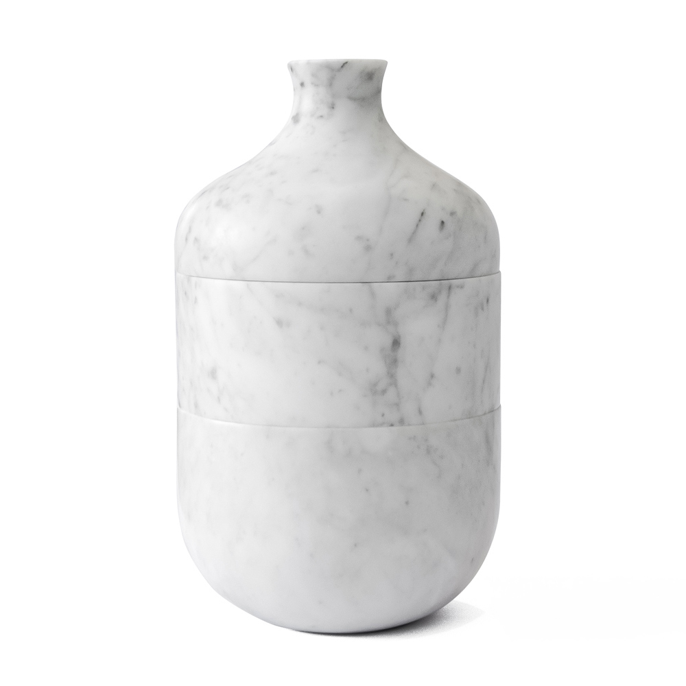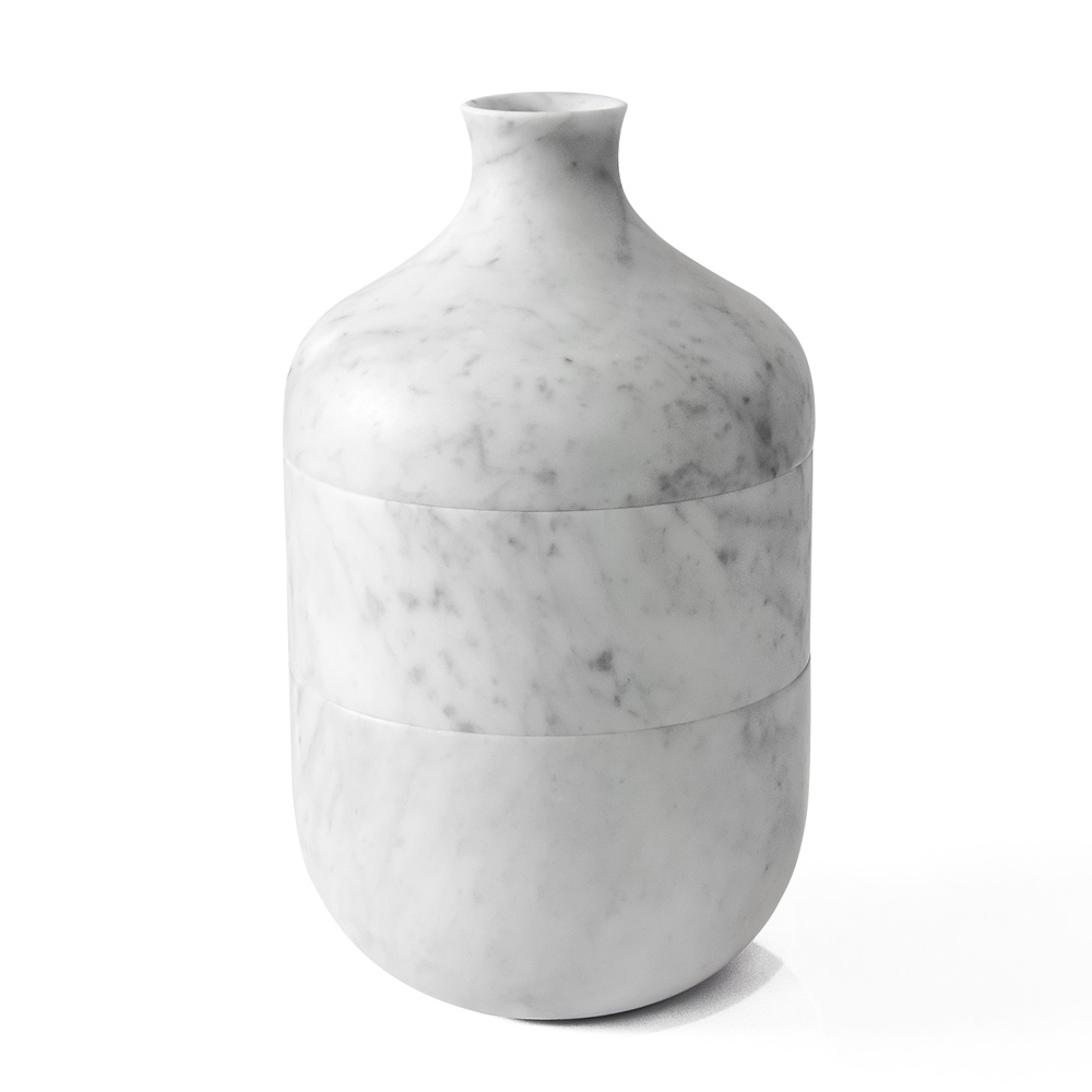 Dekoracyjny wazon z białego marmuru Carrara w 3 częściach wyprodukowany we Włoszech.