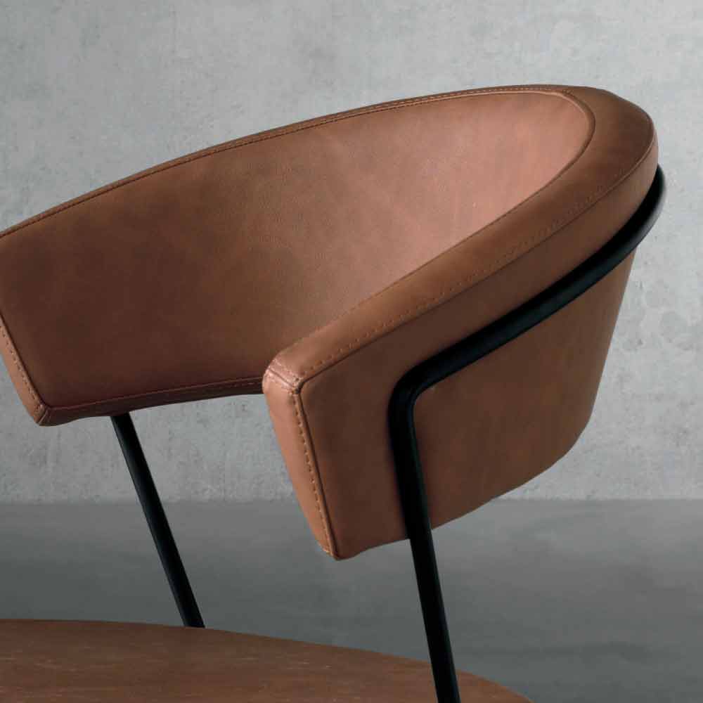 W całości wykonany we Włoszech, z matową czarną metalową strukturą i siedziskiem w kolorze tytoniu.