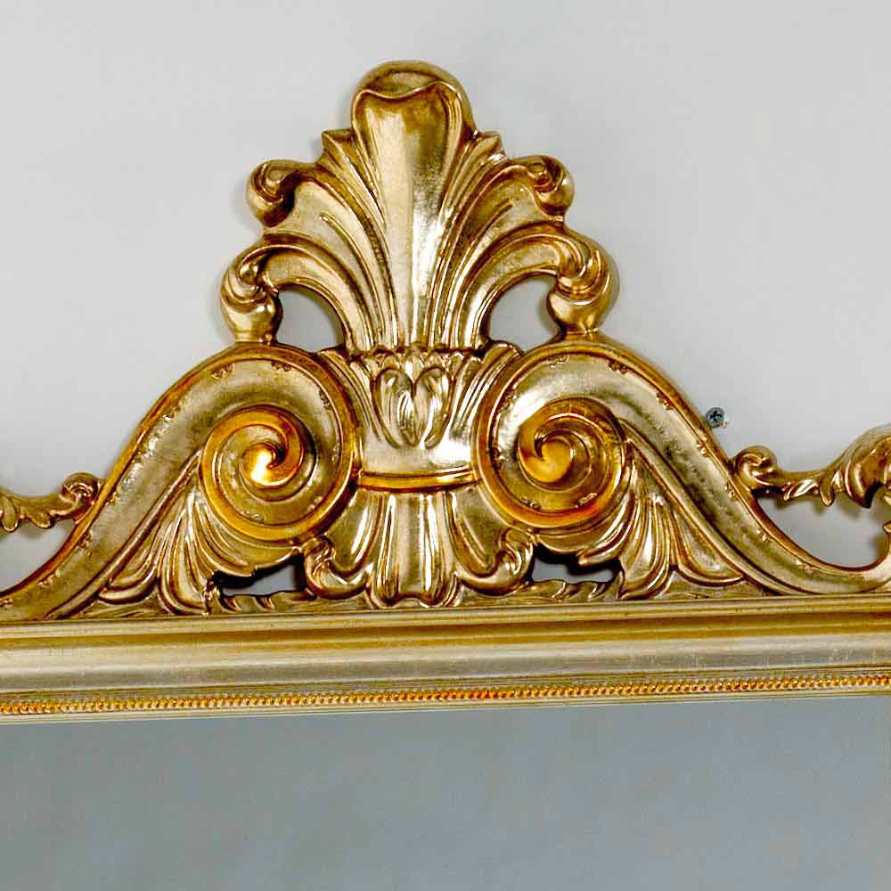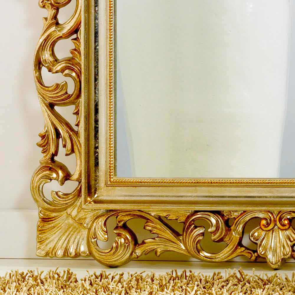 Rama wykonana jest z drewna ozdobionego dekoracjami. Lustro w szlifowanym krysztale o grubości 4 mm.