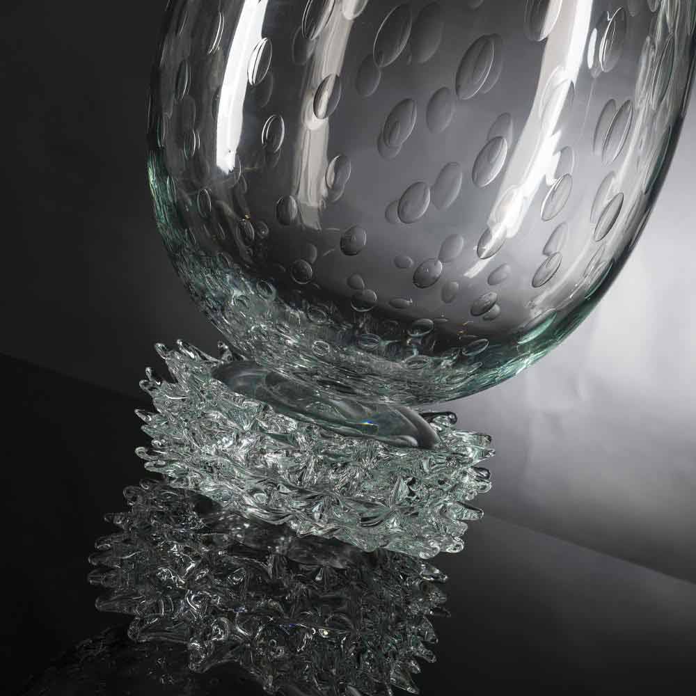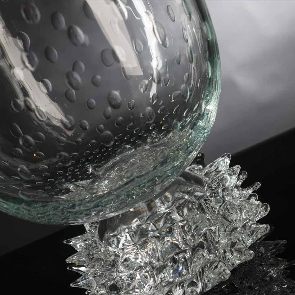 przezroczystego dmuchanego szkła Murano z obrobioną podstawą. Dopełnienie charakteryzujące się