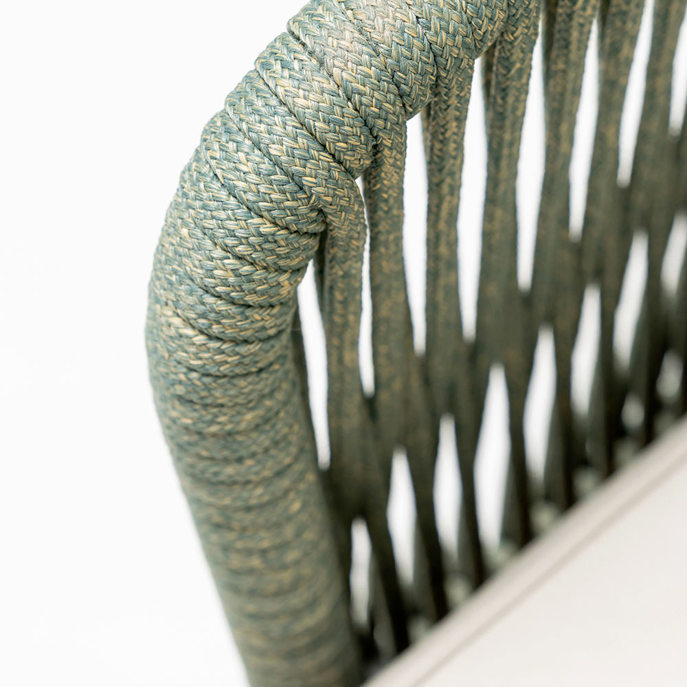 Dostępne wykończenia:- splot linowy w kolorze perłowej bieli + poduszki siedziska/oparcia w kolorze szarej hawany