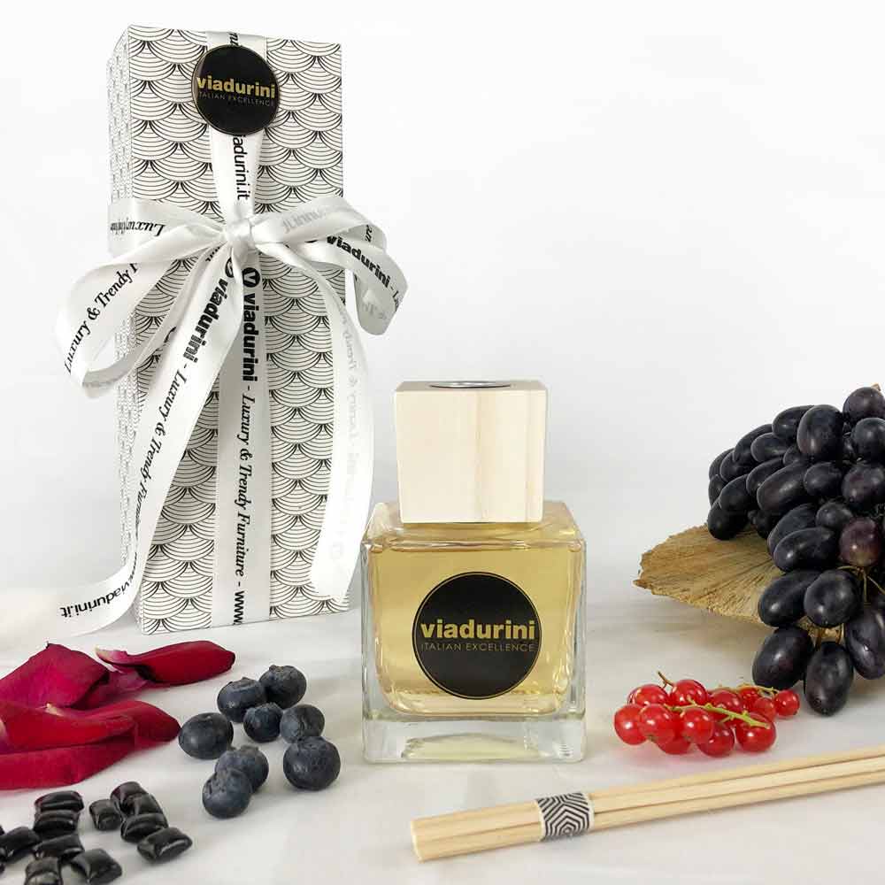 Dyfuzor trzcinowy o owocowym zapachu czerwonego wina z patyczkami - esencja Made in Italy.