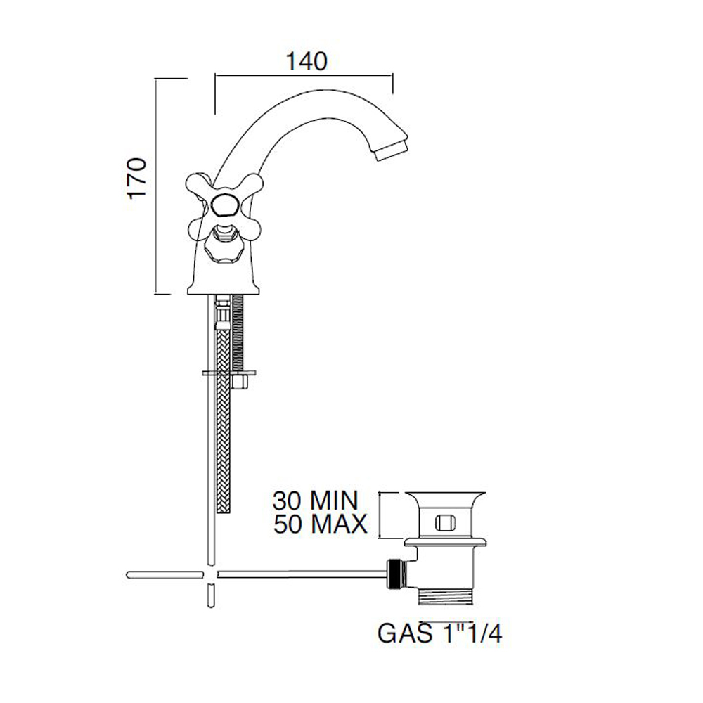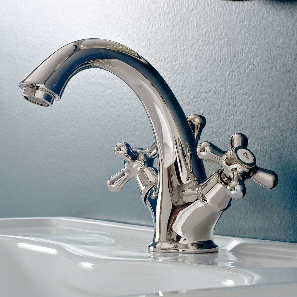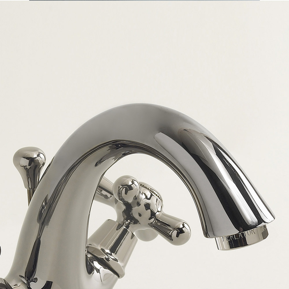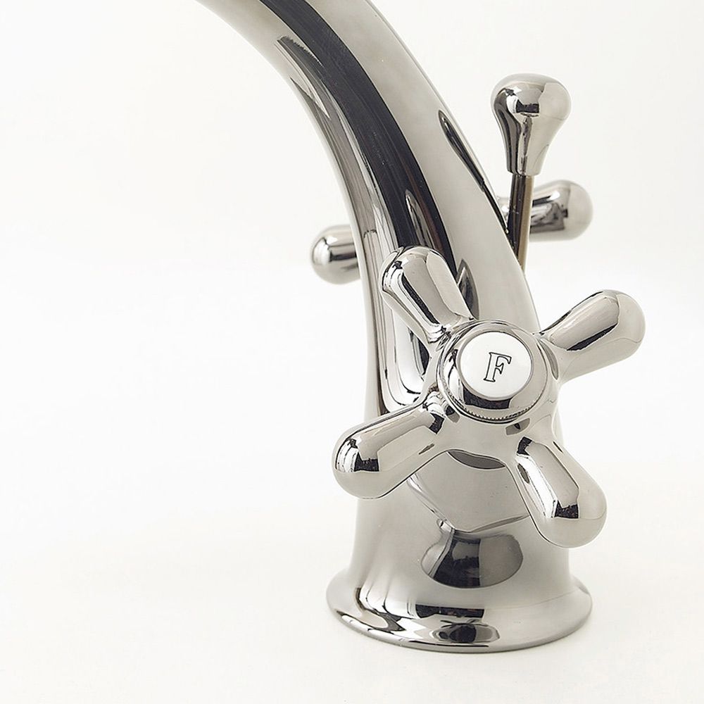 Jednootworowa bateria umywalkowa z odpływem w klasycznym stylu, wykonana z mosiądzu, wysokiej jakości, wyprodukowana we Włoszech.