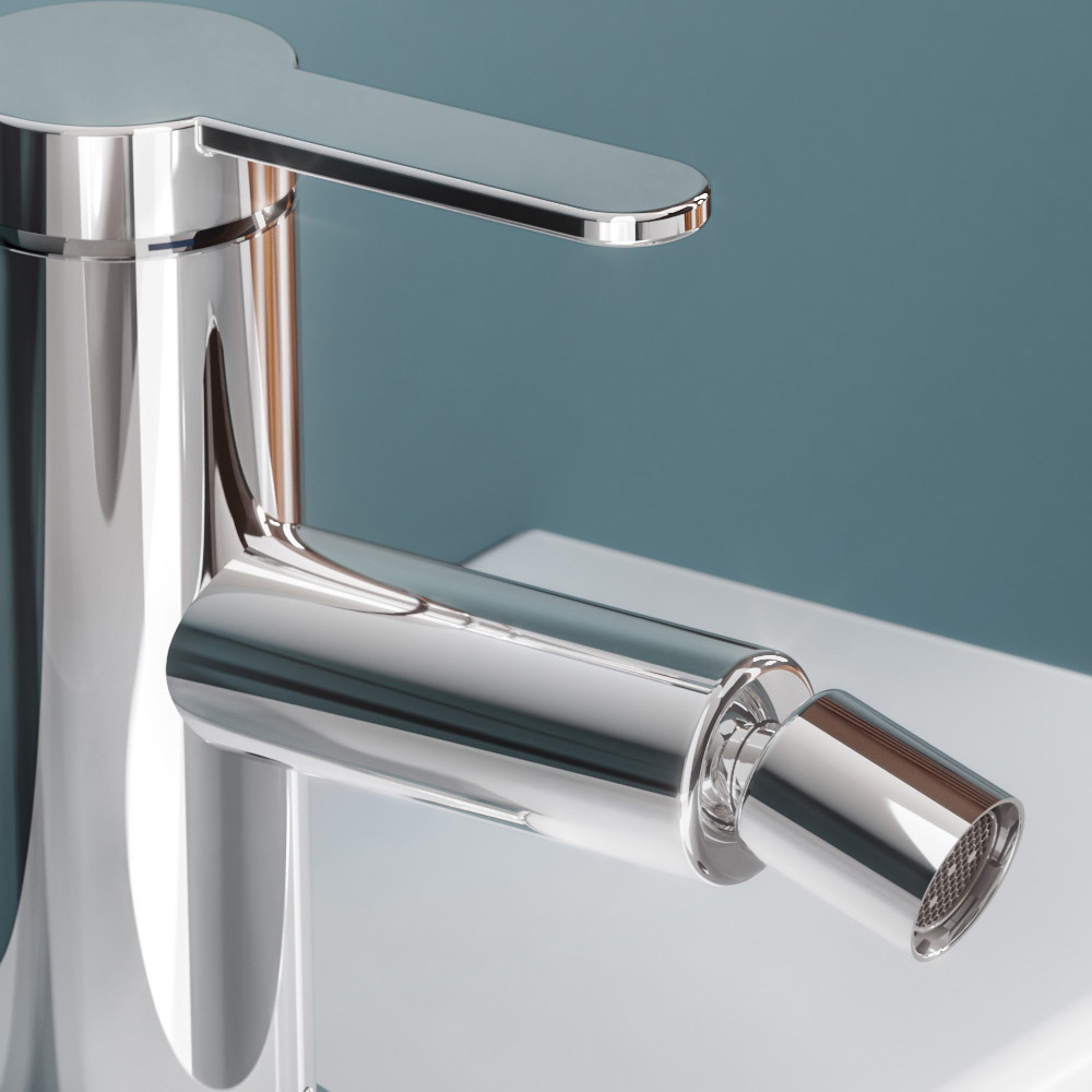 jednouchwytowa bateria bidetowa ma konstrukcję z idealną synchronizacją między uchwytem a wylewką.