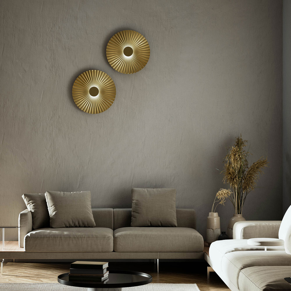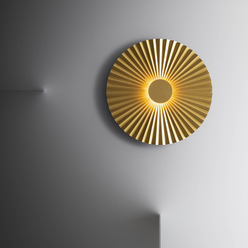 Kinkiet z plisowanego polerowanego naturalnego mosiądzu, 2 rozmiary wyprodukowany we Włoszech.