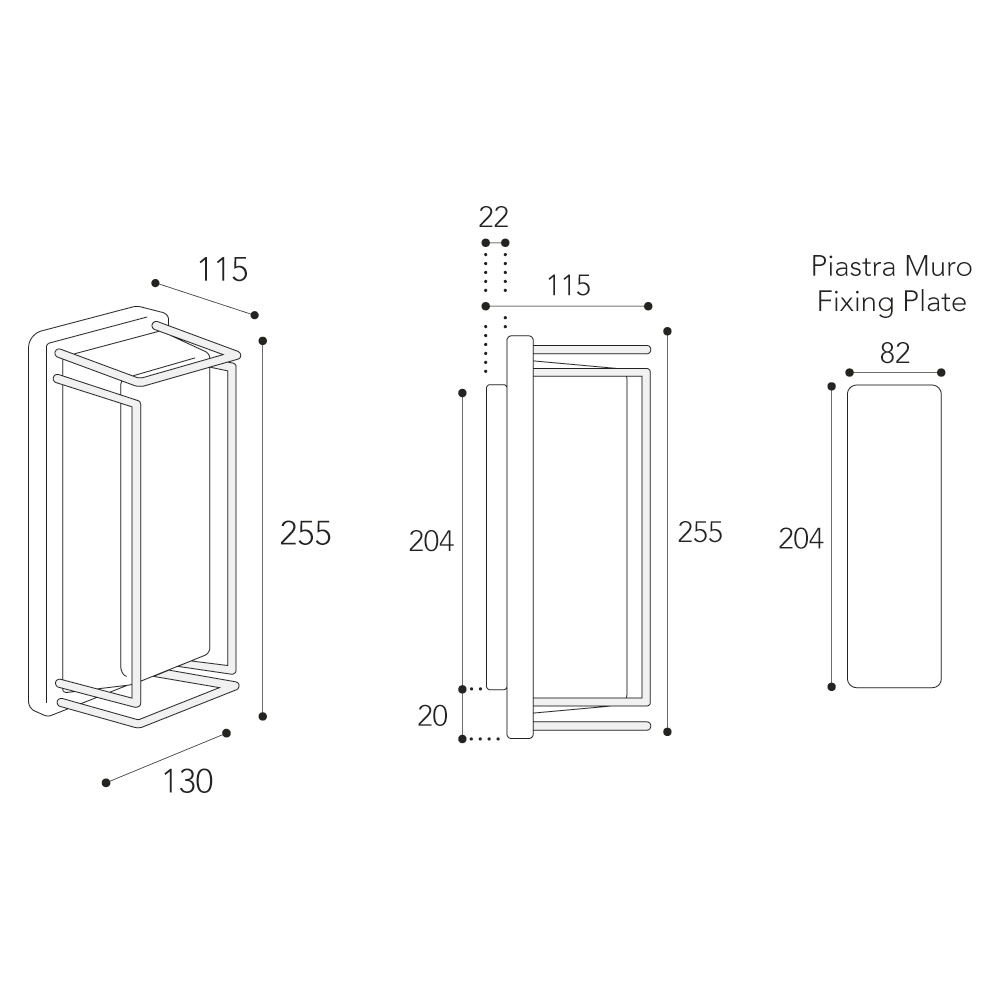 • Płyta ścienna: 20,4 × 8,2 cm