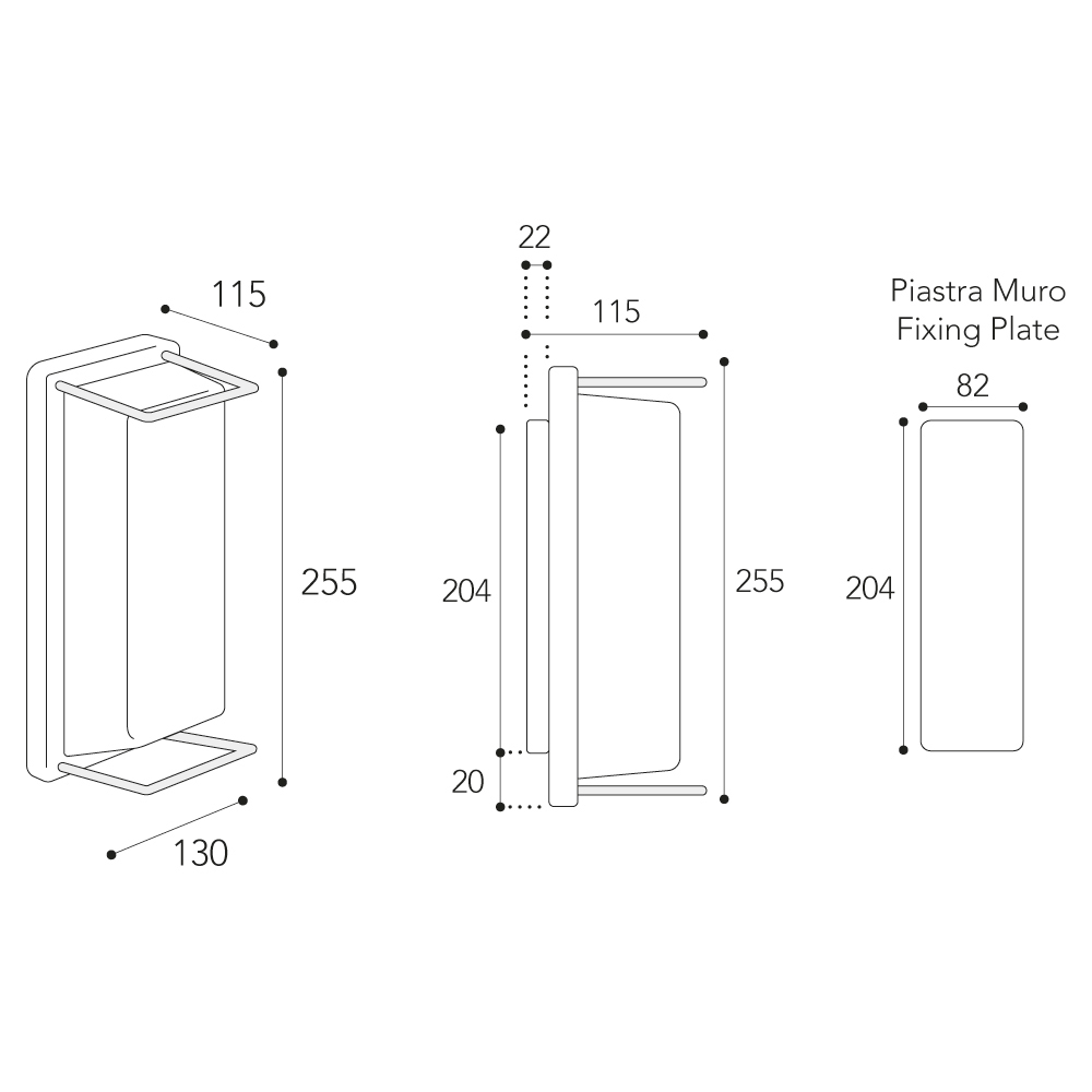 • Płyta ścienna: 20,4 × 8,2 cm