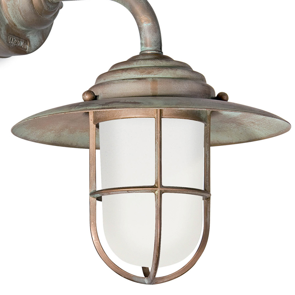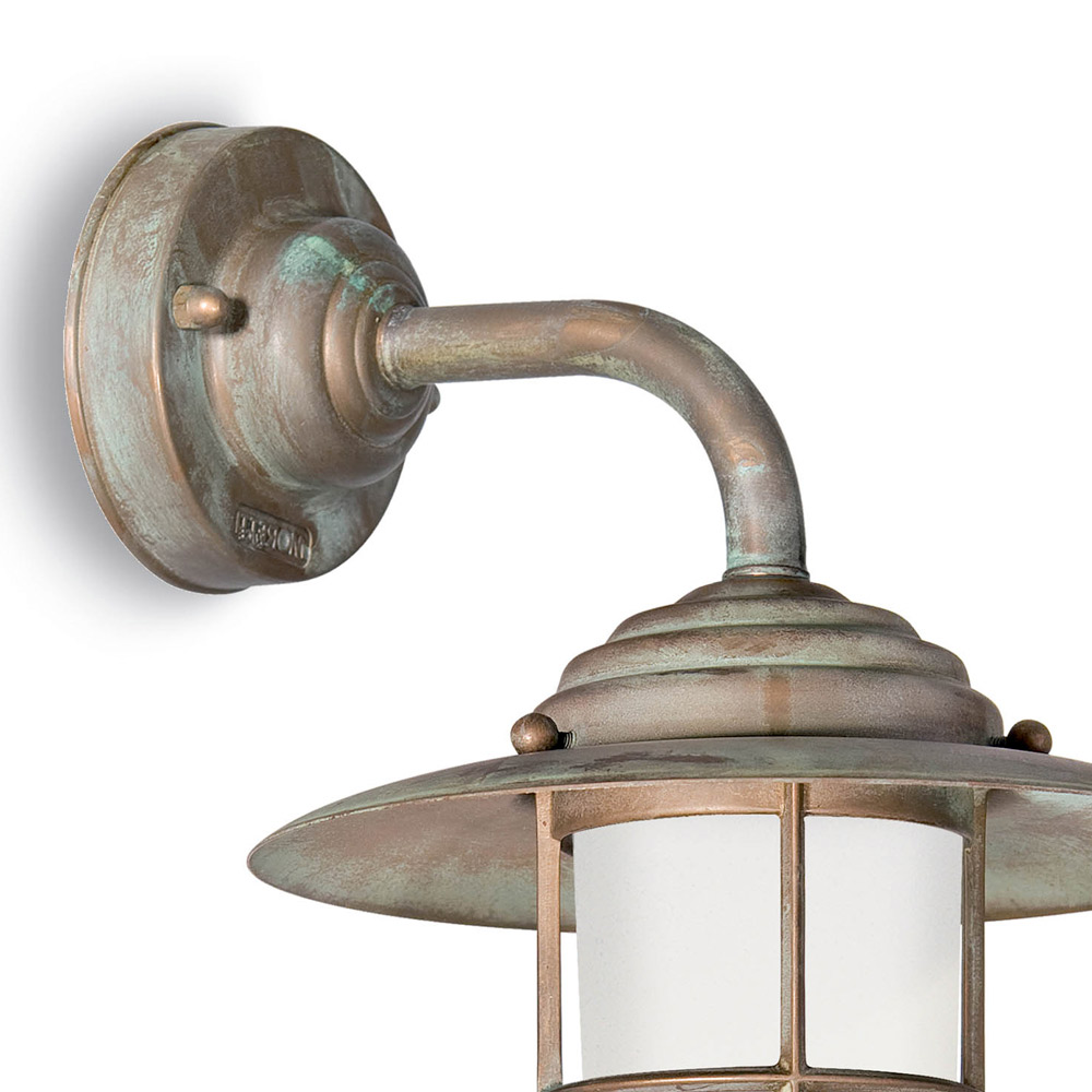 Kinkiet zewnętrzny w stylu vintage z mosiądzu, szkło opalowe - Elfico