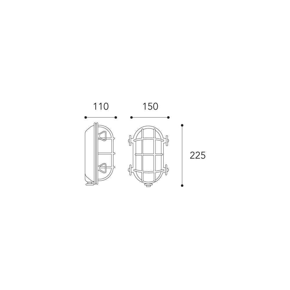 Owalny klosz , dostępny w wersji z przezroczystego lub opalowego szkła , chroniony jest solidną metalową kratką , nawiązującą do świata marynistycznego i industrialnego, zapewniając jednocześnie bezpieczeństwo i trwałość . Lampa jest funkcjonalna i otulająca , idealna do oświetlenia fasad , wejść , zewnętrznych schodów i przestrzeni zewnętrznych .