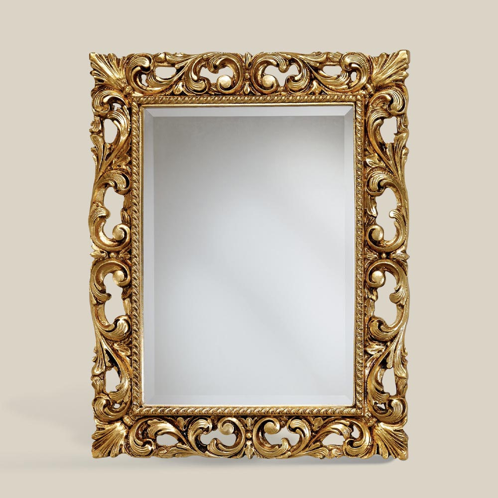Klasyczne prostokątne lustro ze złotą ramą Made in Italy.