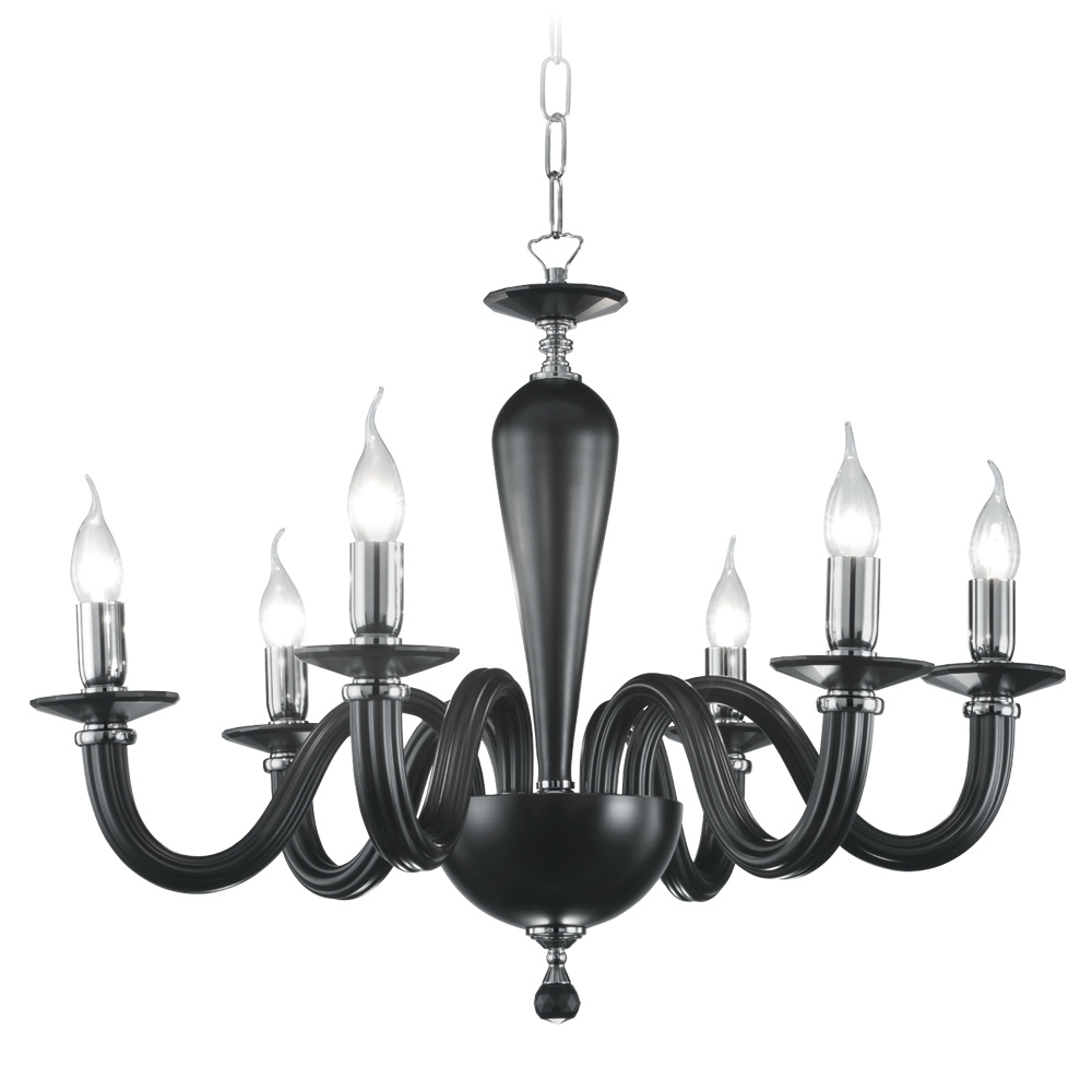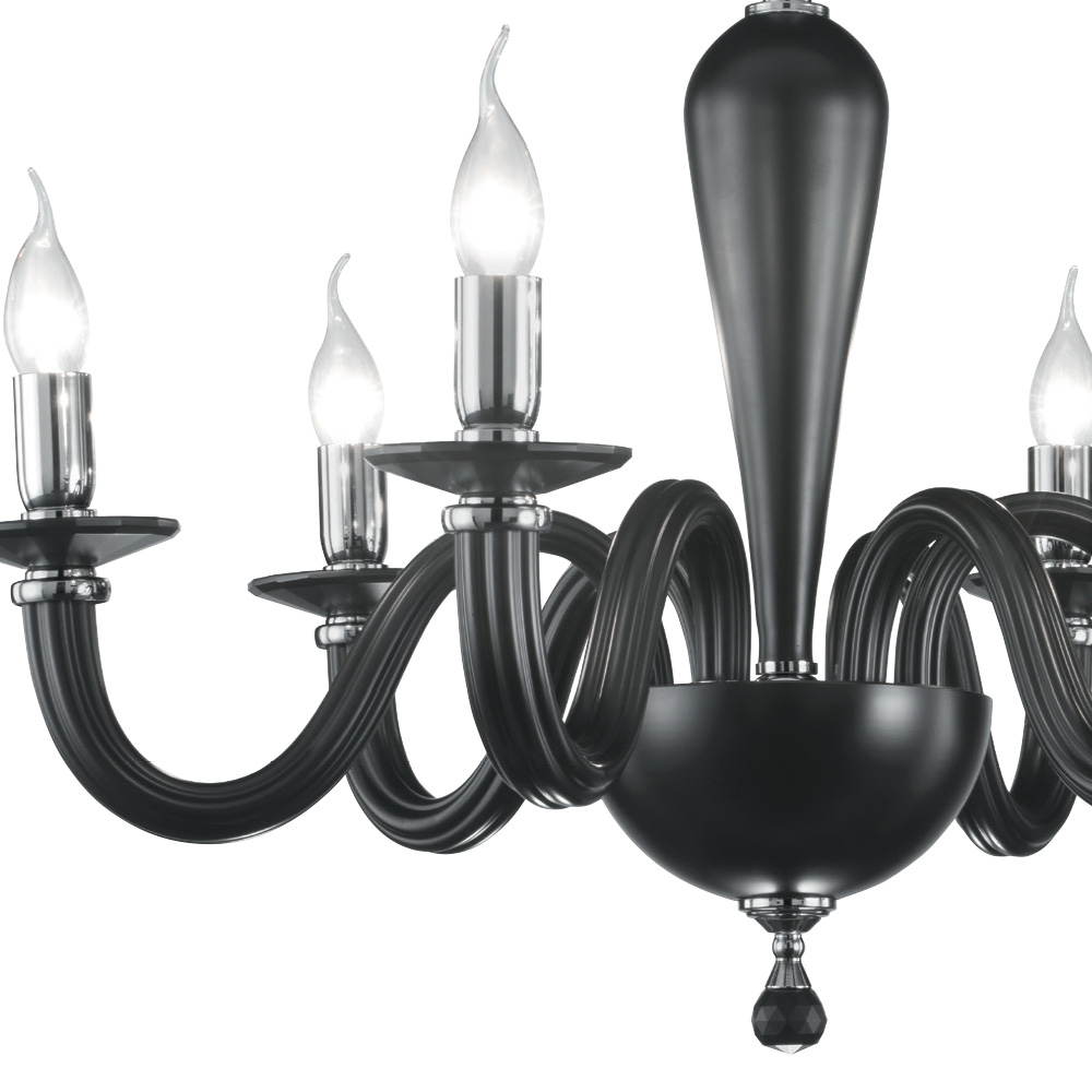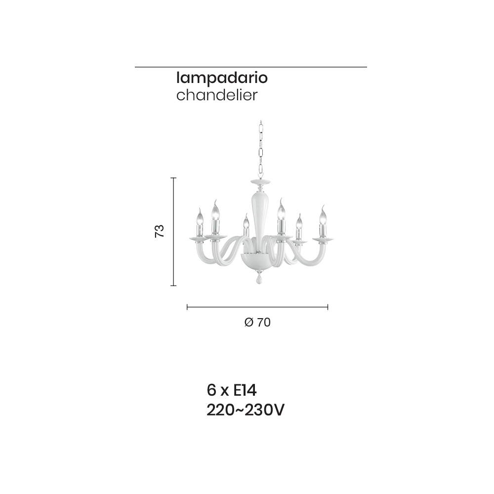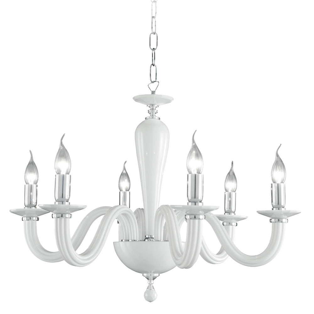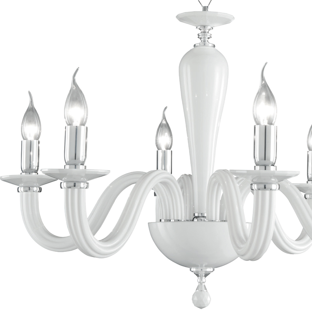 Żyrandol z 6 światłami z ręcznie robionego szkła i chromowanego metalu, klasyczny luksus wyprodukowany we Włoszech.