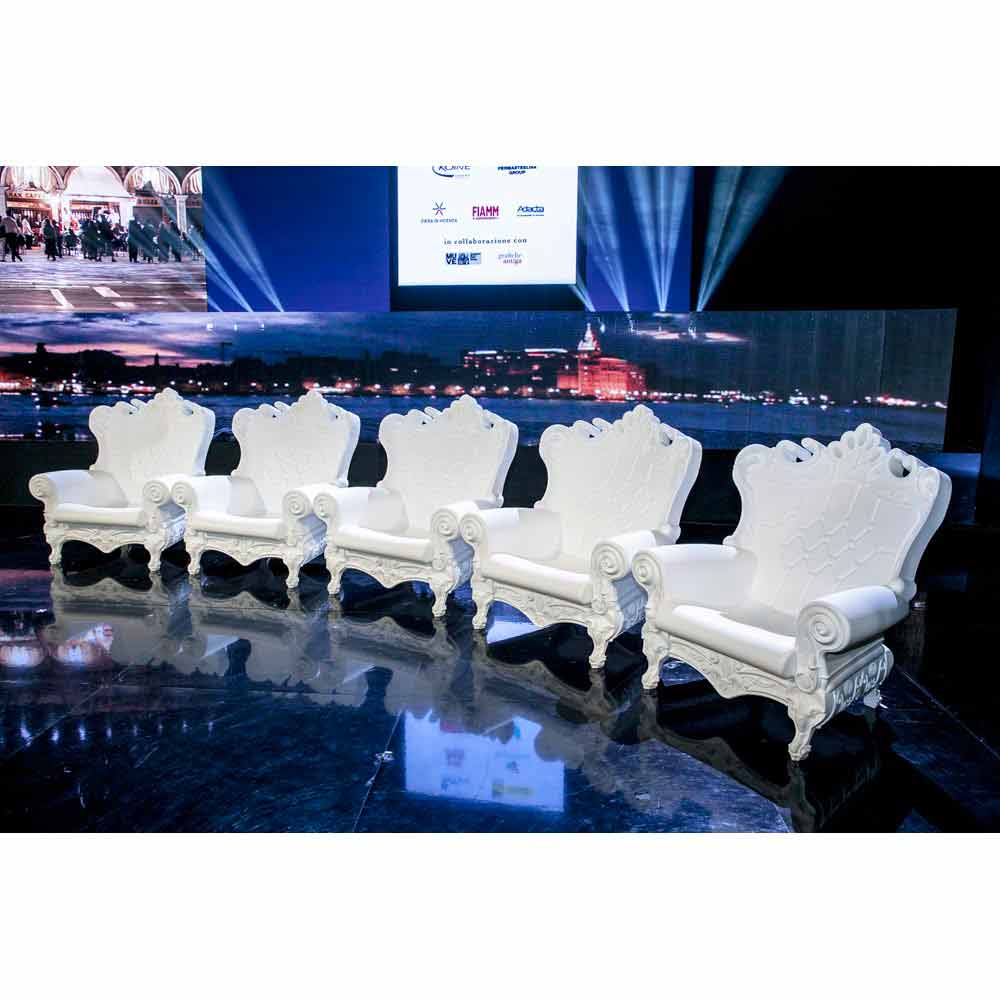 Queen Of Love to fotel, który nadaje się zarówno do wnętrz, jak i na zewnątrz. Dopełnienie o unikalnym designie made in Italy, które swoim majestatem natychmiast przyciąga uwagę i ukoronuje każdego, kto na nim usiądzie. Idealny jako szykowny dodatek na wieczory i imprezy lub jako oprawa na specjalne okazje.