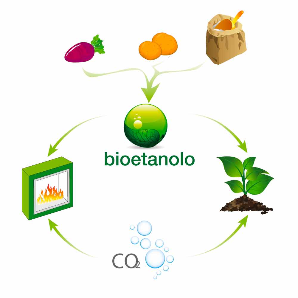 Spalanie bioetanolu nie wydziela zapachów i wytwarza jedynie ilość dwutlenku węgla (CO2) równą ilości wytwarzanej przez człowieka. Jest to szczególnie przyjazne dla środowiska, ponieważ ilość CO2 uwalnianego podczas spalania jest taka sama, jak ta absorbowana kilka lat wcześniej w procesie fotosyntezy. Zatem spalanie bioetanolu nie zaburza naturalnej równowagi ekosystemu.