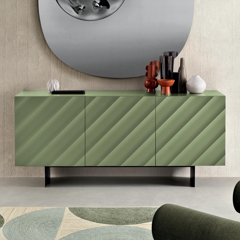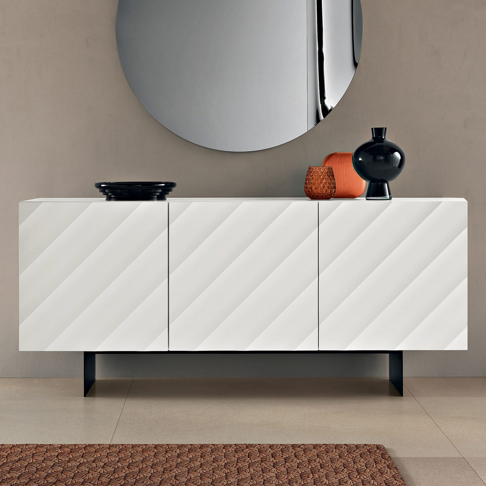 Elegancka , designerska komoda Made in Italy , idealna do stylowego wyposażenia salonu lub jadalni . Jej nowoczesny design wyróżnia się silnym efektem wizualnym, przekształcając komodę w prawdziwie dekoracyjny element.