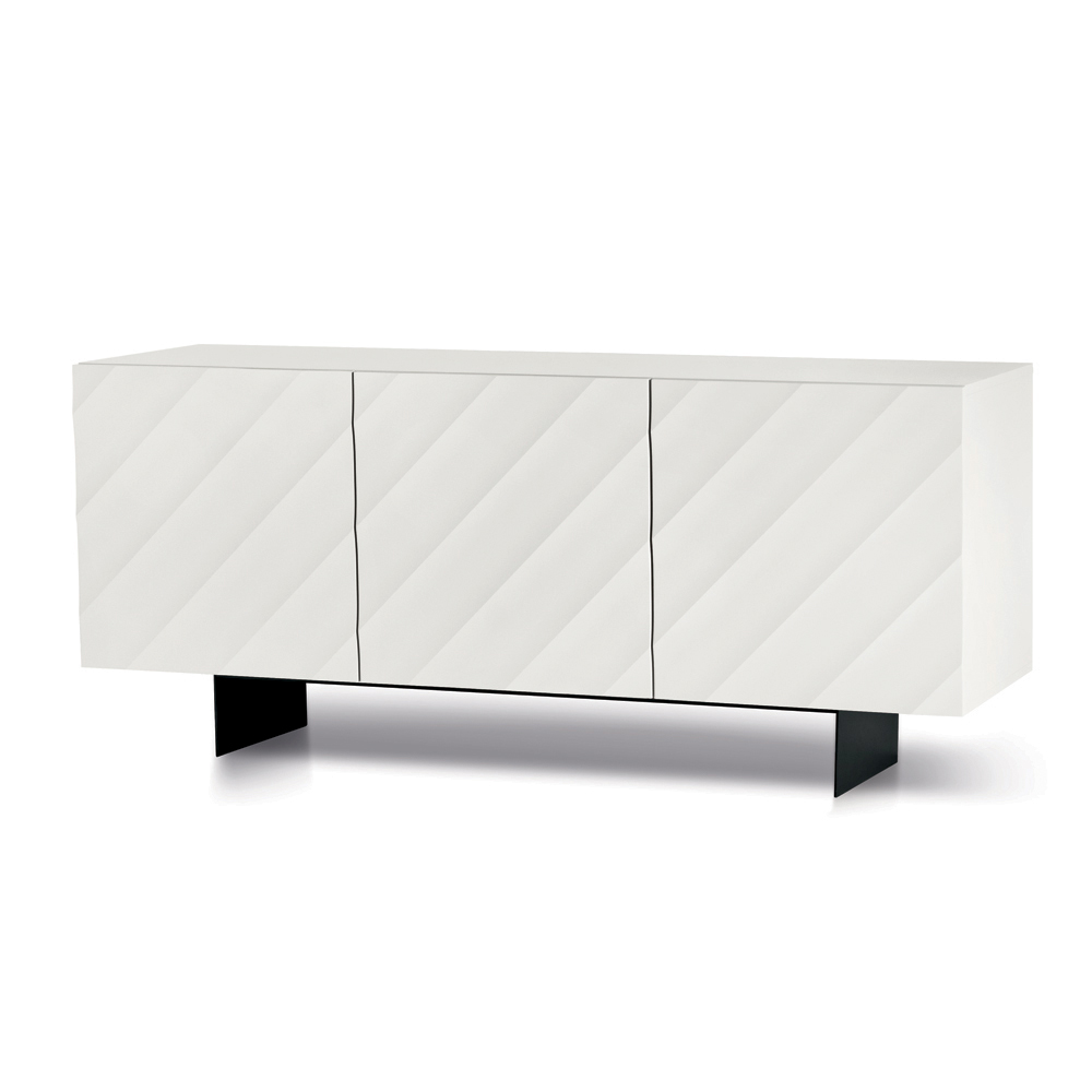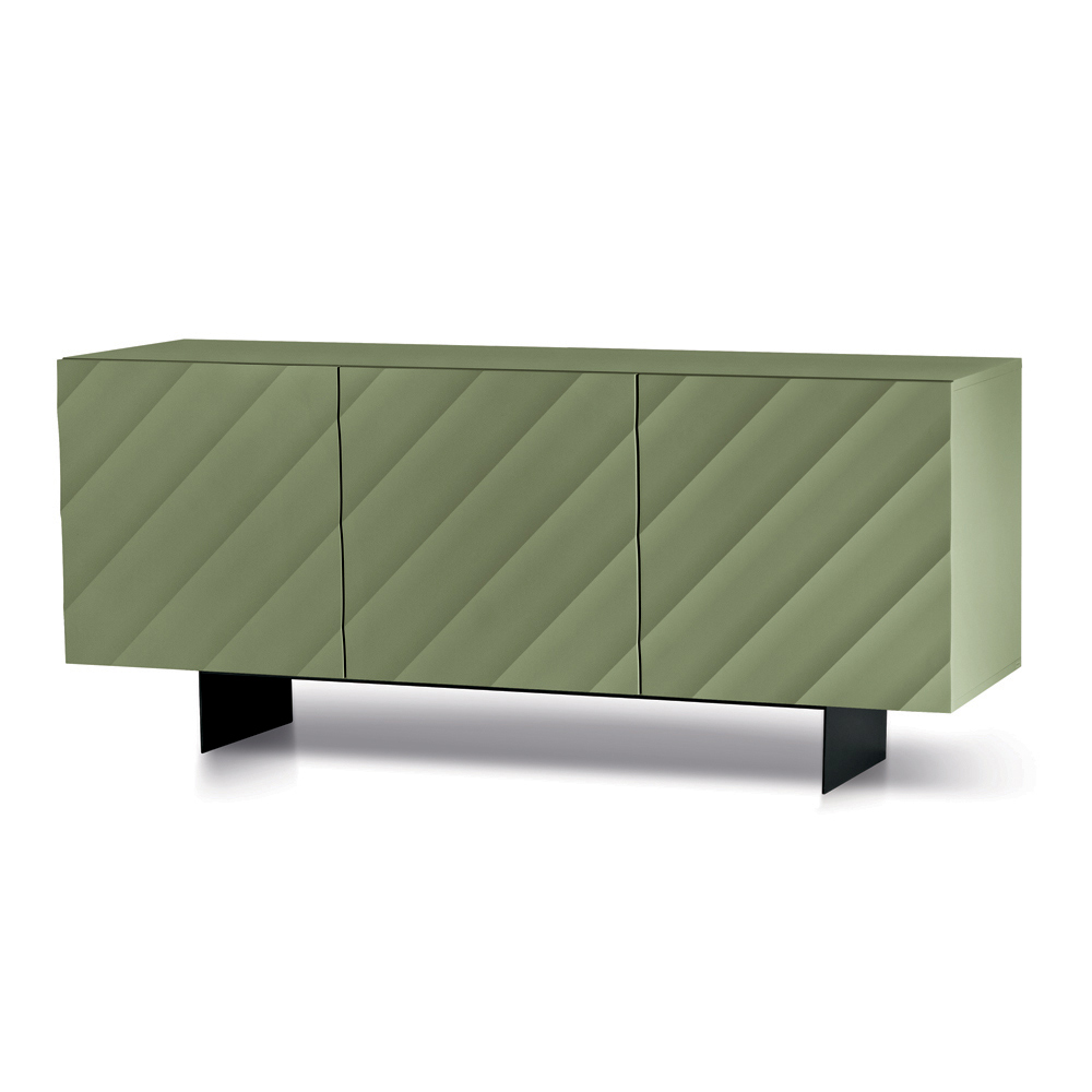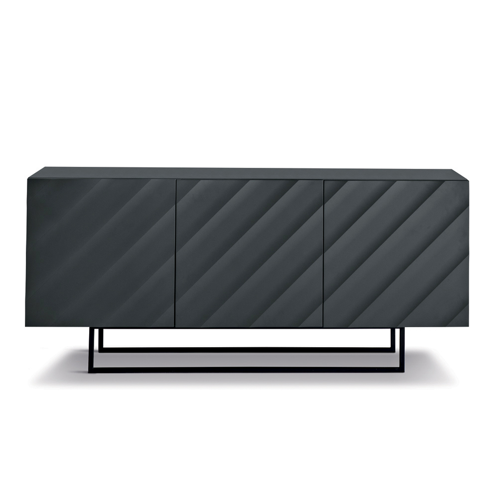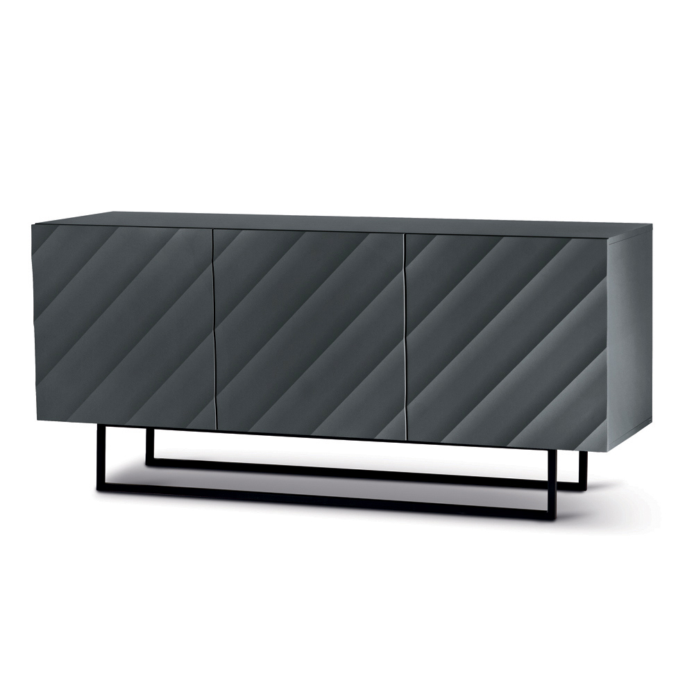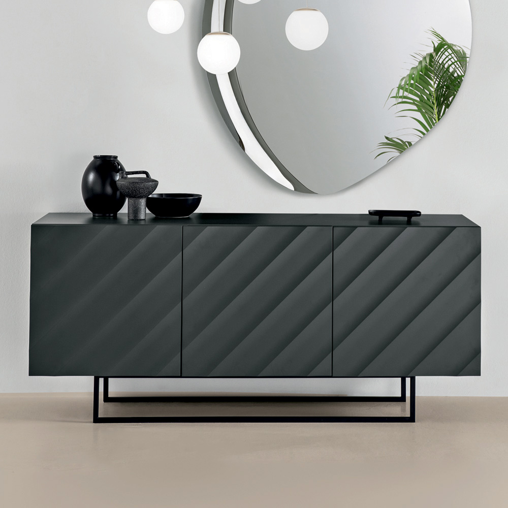 Designerska kredens wykonany we Włoszech z tłoczonymi geometrycznymi drzwiami i metalową podstawą