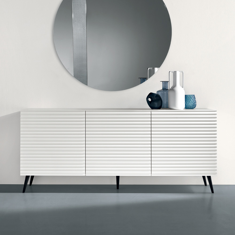 Elegancka, designerska komoda Made in Italy , idealna do stylowego umeblowania salonu lub jadalni . Jej nowoczesny design wyróżnia się czystą, wyrafinowaną estetyką, która dyskretnie i z charakterem ozdobi każdą ścianę.