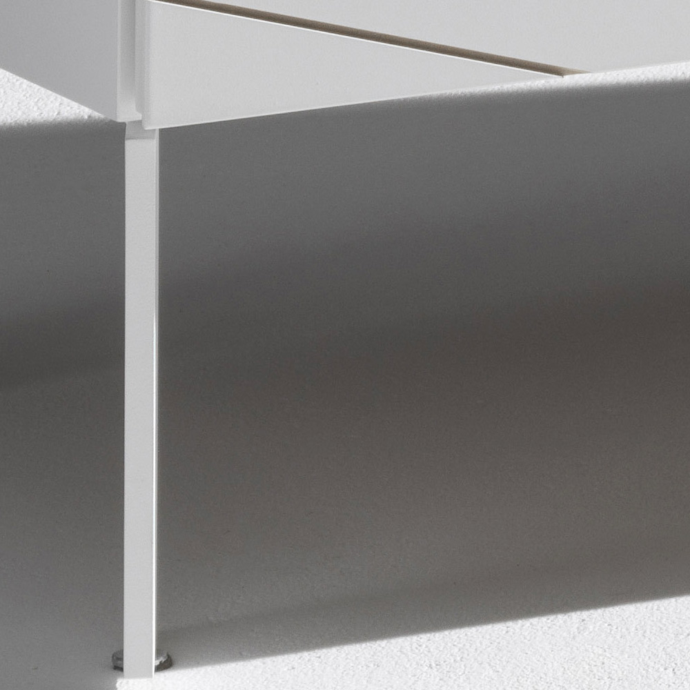 Podniesione o 12 cm nóżki optycznie zmniejszają ciężar konstrukcji i ułatwiają czyszczenie podłogi, nadając meblowi elegancki i proporcjonalny wygląd.