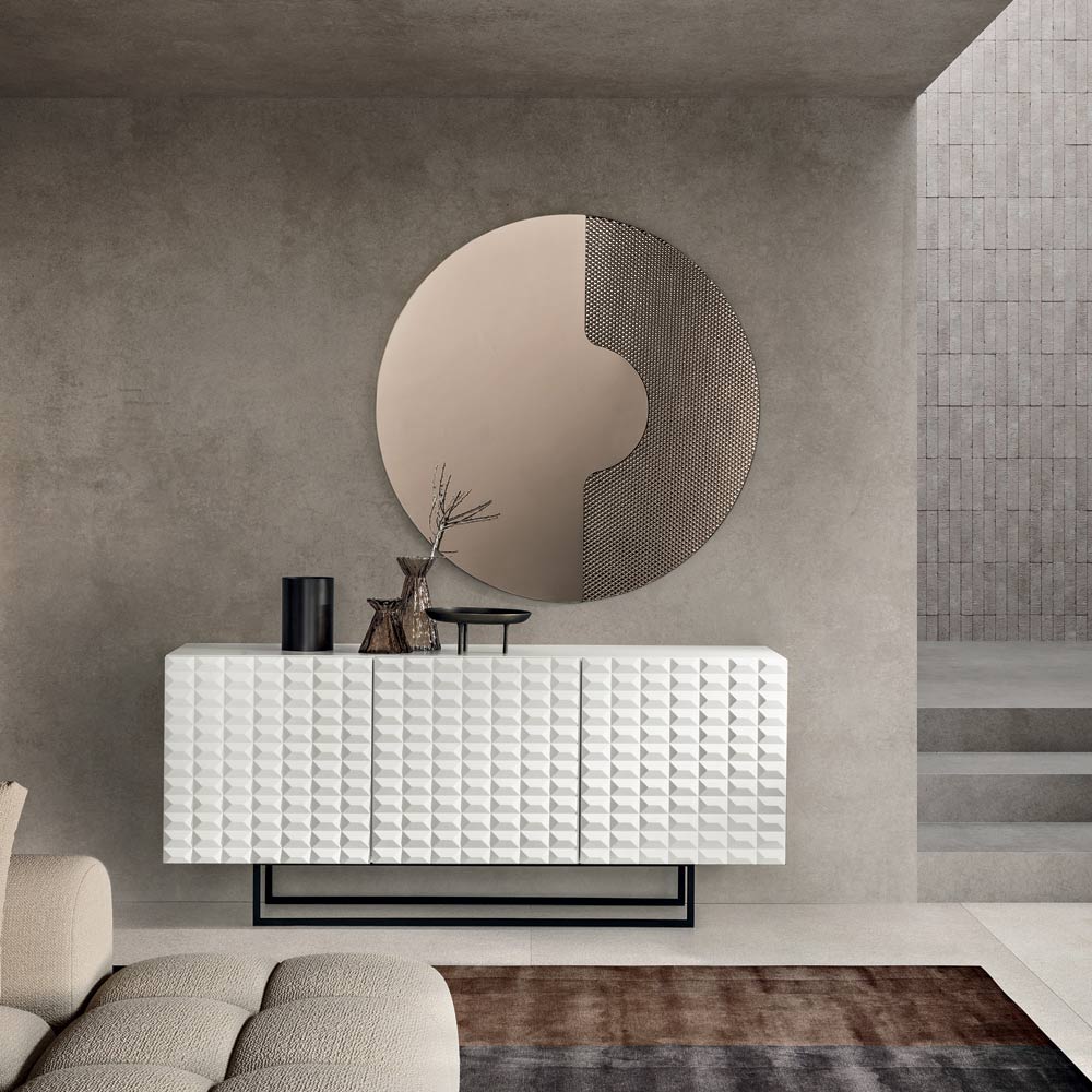 Elegancka, designerska komoda Made in Italy , idealna do stylowego umeblowania salonu lub jadalni . Jej nowoczesny design czerpie inspirację z włoskiej architektury, przekształcając ją w element dekoracyjny, który nada Twojej ścianie wyrazisty charakter.