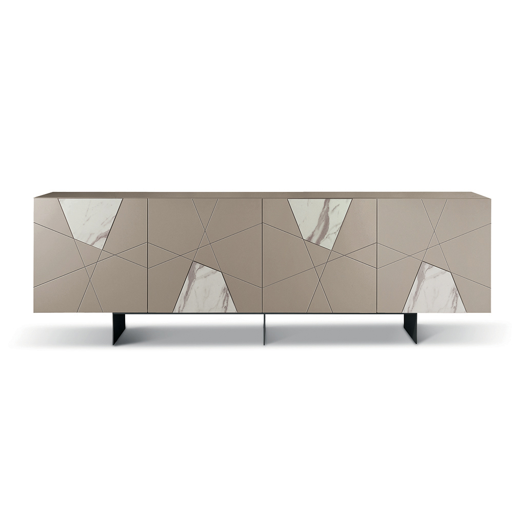 Elegancka , designerska komoda Made in Italy , idealna do stylowego wyposażenia salonu lub jadalni . Jej nowoczesny design łączy geometryczne linie i kontrastujące materiały, tworząc wyrafinowany i funkcjonalny dodatek meblowy.