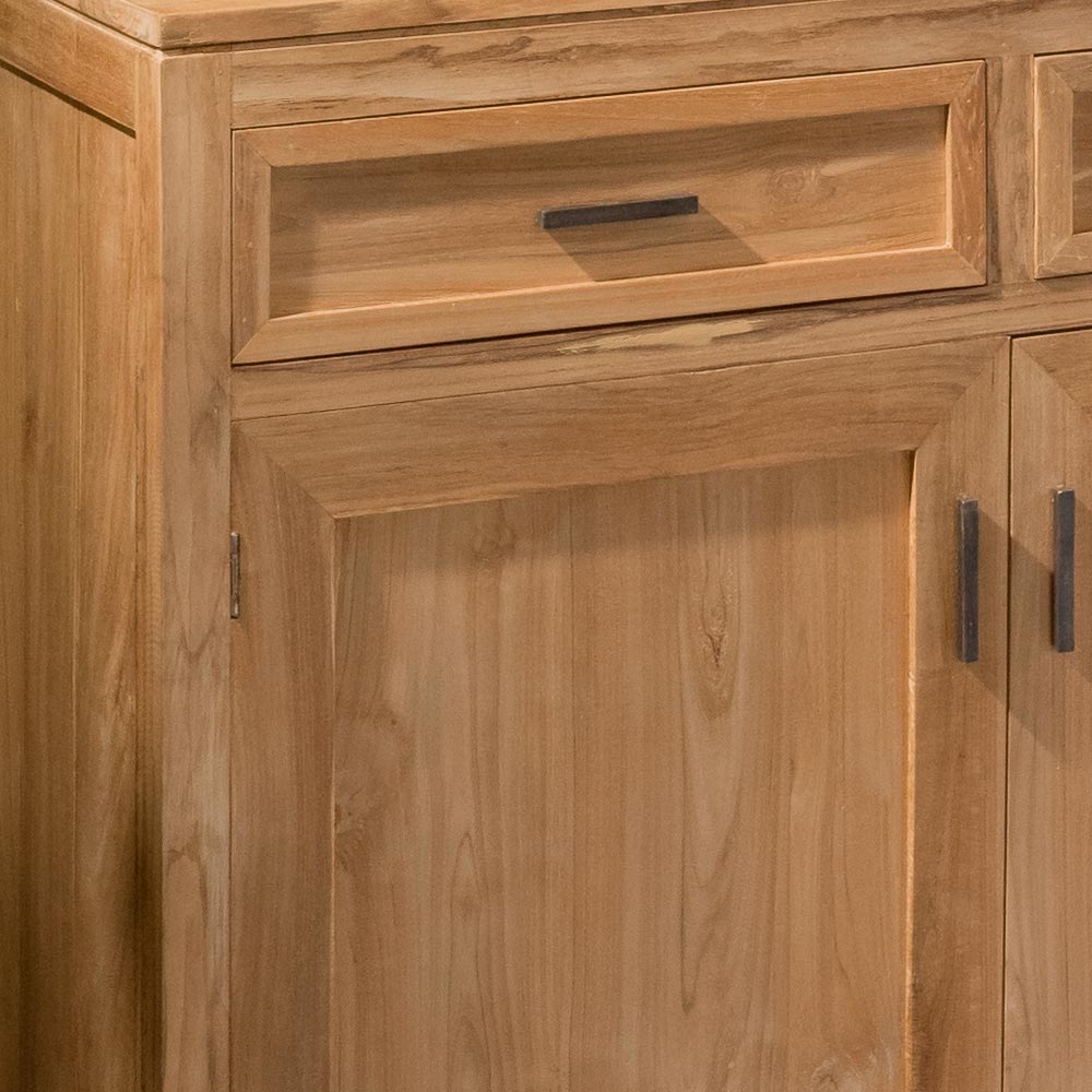 Ta solidna tekowa komoda to ponadczasowy i autentyczny mebel, idealny do upiększenia przestrzeni takich jak kuchnia, jadalnia czy salon. Naturalne usłojenie drewna i kunszt wykonania dodają ciepła i elegancji, sprawiając, że każdy mebel jest wyjątkowy.
