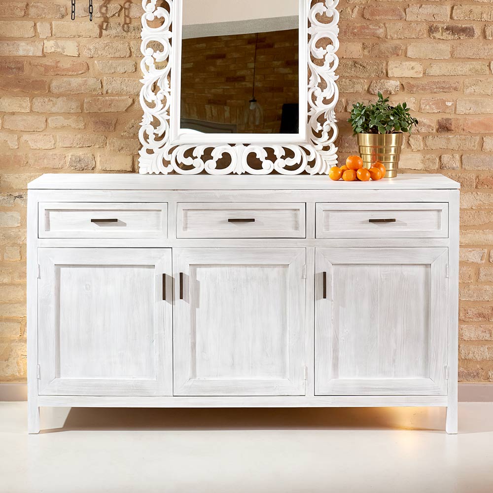 Wyposażona w 3 drzwi i 3 szuflady , oferuje dużą przestrzeń do przechowywania, umożliwiając uporządkowanie naczyń, pościeli lub przedmiotów codziennego użytku w sposób uporządkowany i stylowy.