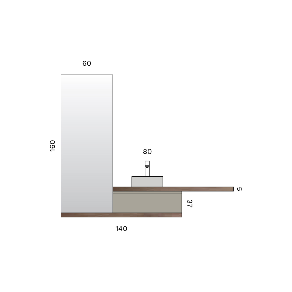 Zawieszona kompozycja łazienkowa o podstawowym i wyrafinowanym designie, idealna do współczesnych wnętrz, w których poszukuje się równowagi między naturalnymi materiałami a nowoczesnym minimalizmem .