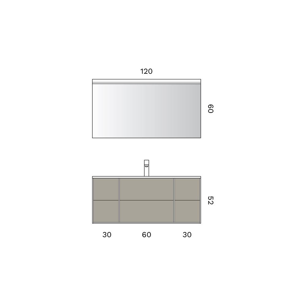 Nowoczesna kompozycja łazienkowa, która idealnie łączy elegancję z funkcjonalnością. Matowe, gołębie, szare wykończenie szafek ściennych tworzy wyrafinowaną i relaksującą atmosferę, idealną do nowoczesnych i eleganckich wnętrz.
