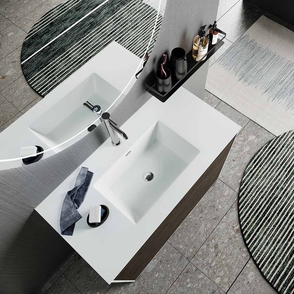 Kompletna kompozycja łazienkowa z lustrem, umywalką z żywicy i odporną na zarysowania podstawą Made in Italy.