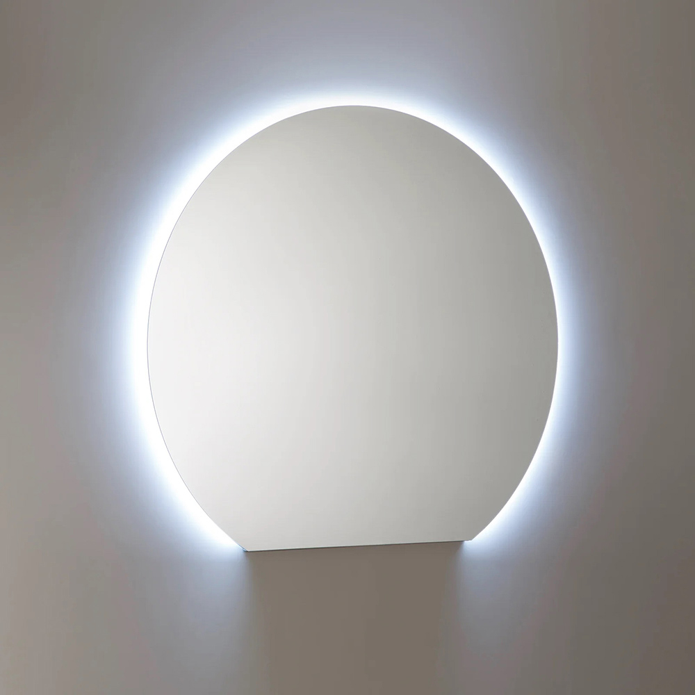 Kompozycję dopełnia okrągłe lustro ze zintegrowanym oświetleniem LED, które dodaje przestrzeni głębi i pozwala na lepsze wykorzystanie obszaru umywalki, tworząc przyjazną i wyrafinowaną atmosferę.