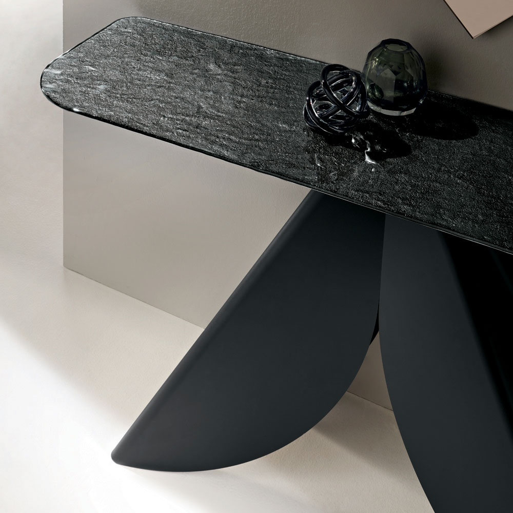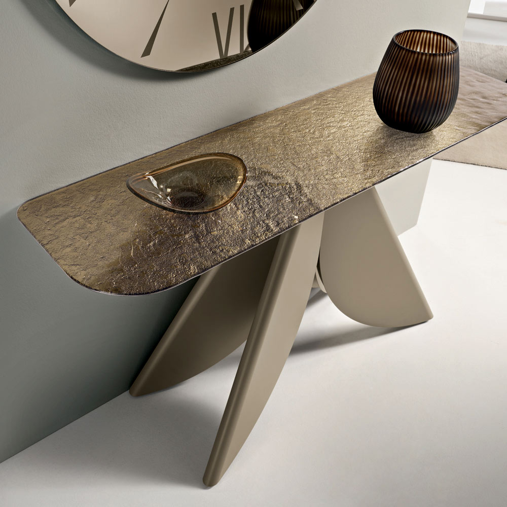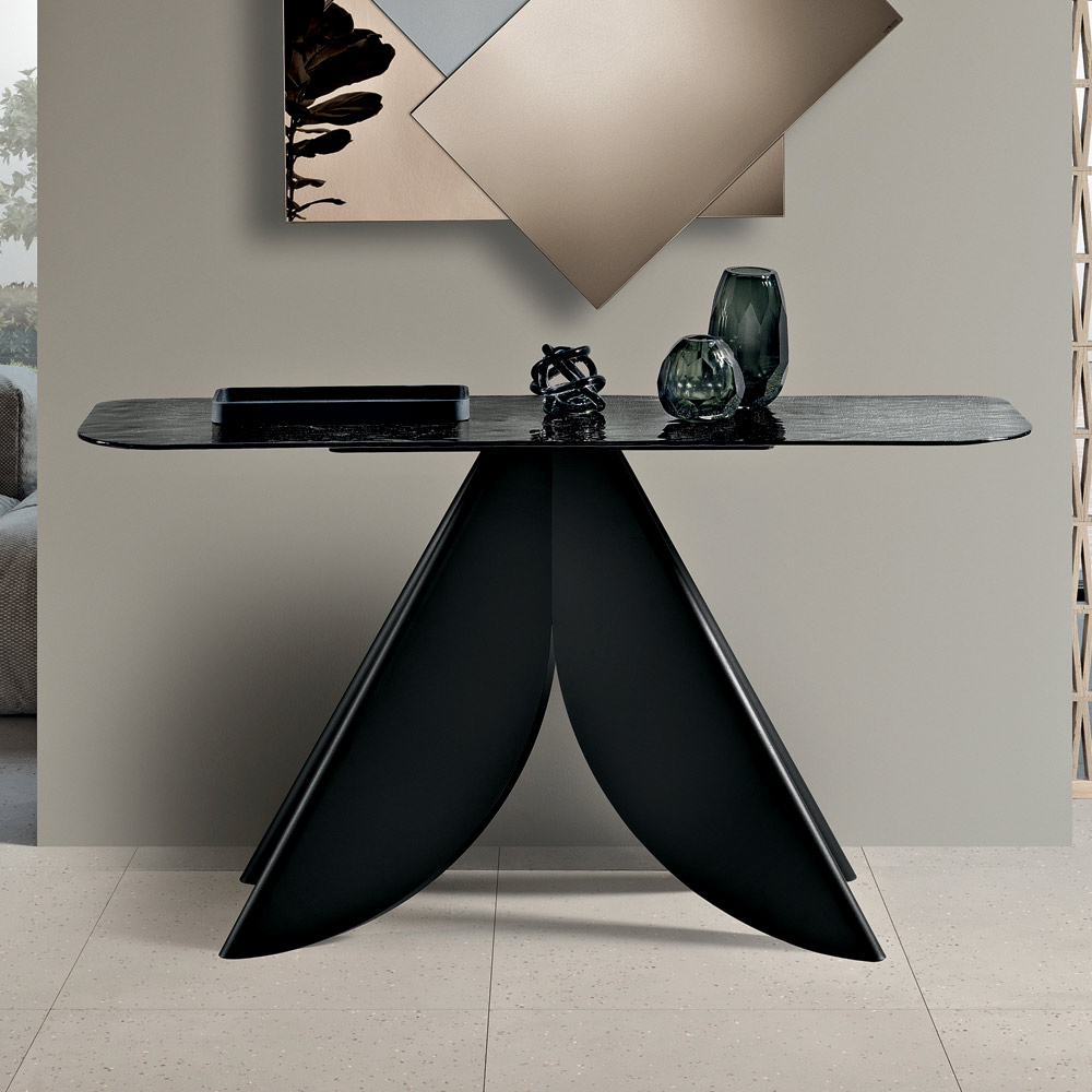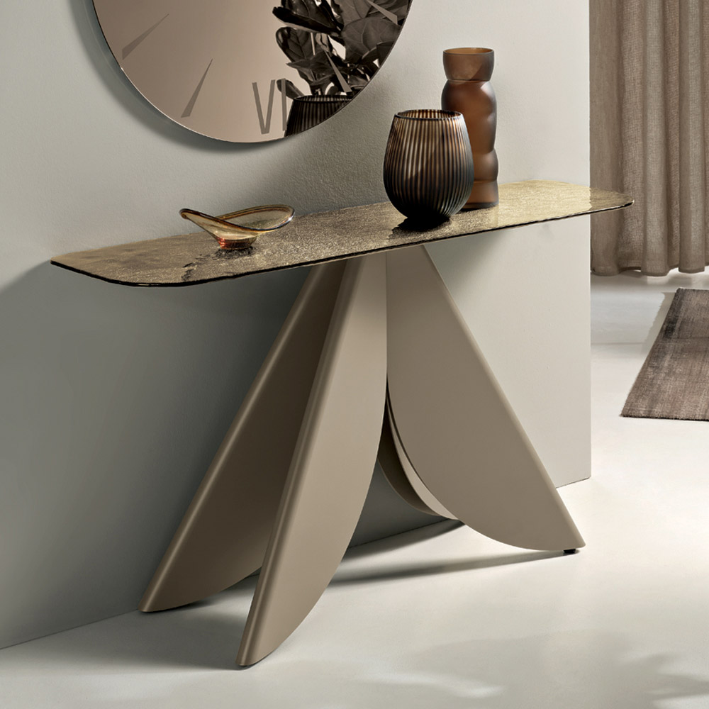 Elegancki, designerski stolik konsolowy, wyprodukowany we Włoszech , idealny do stylowego umeblowania przedpokoju , salonu lub korytarzy. Jego nowoczesny design łączy w sobie wizualną lekkość i wyrazistą estetykę, przekształcając funkcjonalny element w prawdziwie dekoracyjny dodatek.