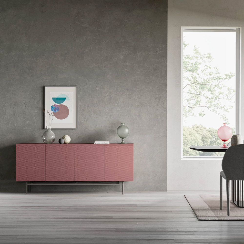 Kredens do salonu z drewna ekologicznego z 4 drzwiami, wysokiej jakości wyprodukowany we Włoszech.