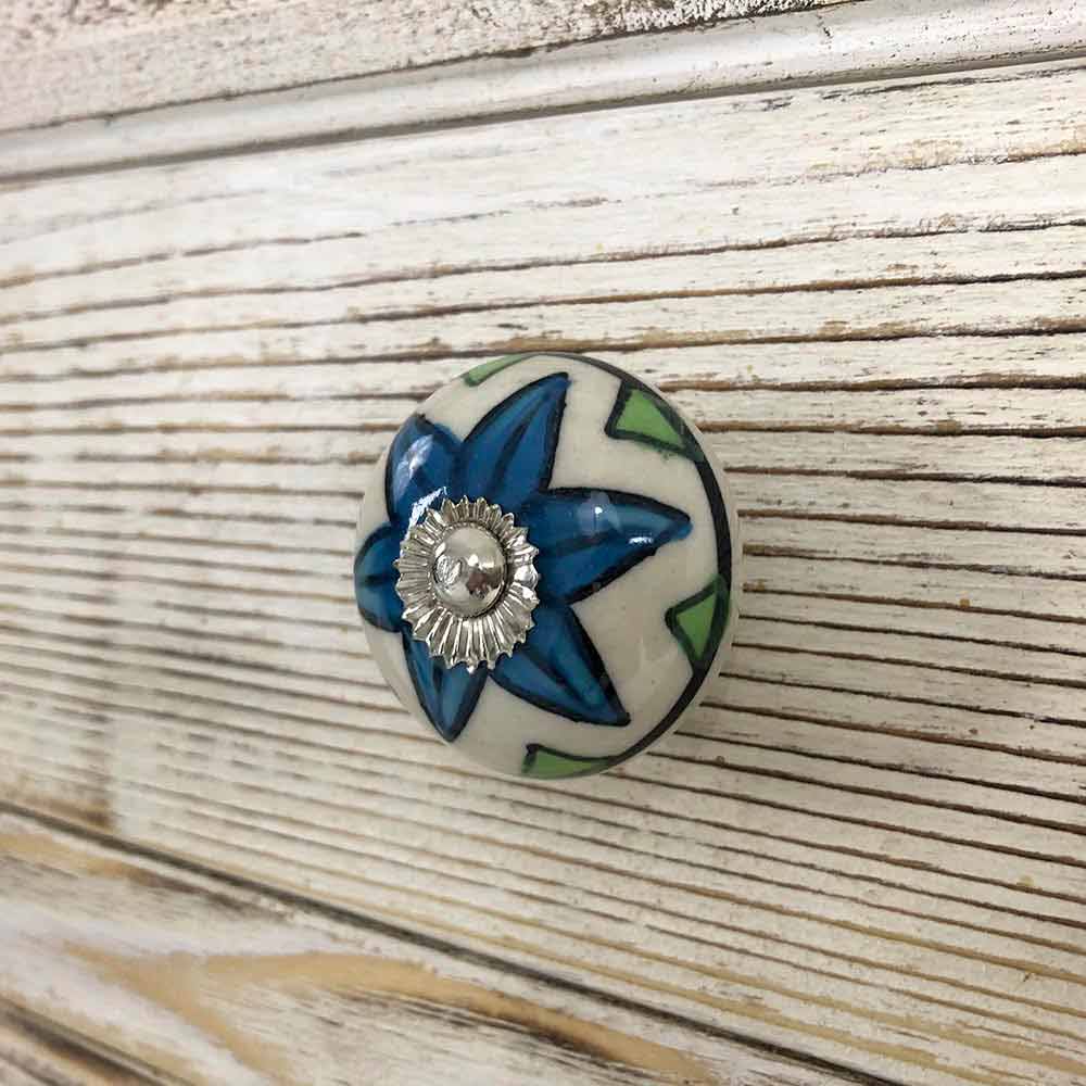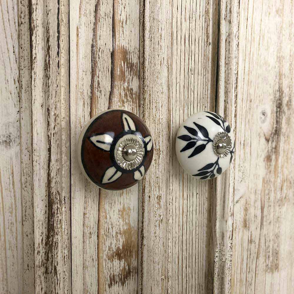 Ręcznie wykonany kredens z litego drewna z ceramicznymi gałkami, wysokiej jakości wyprodukowany we Włoszech.