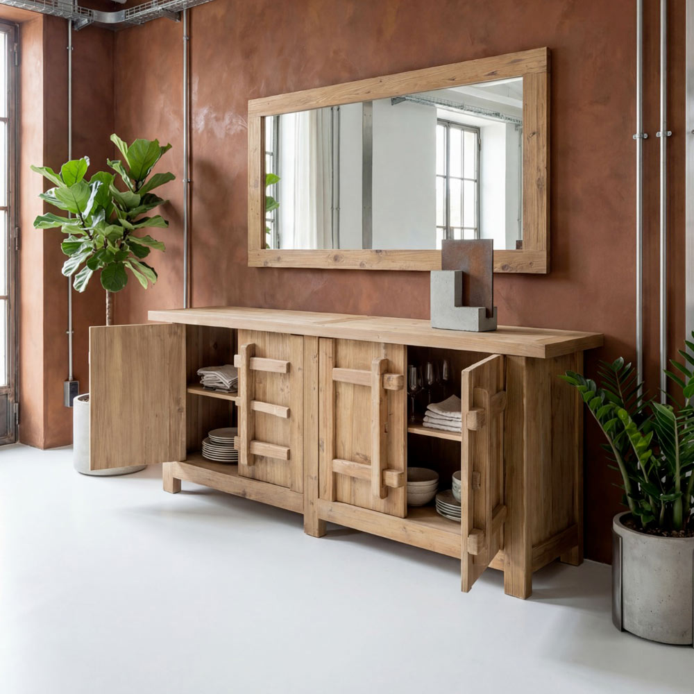 Dostępna w dwóch konfiguracjach, ta komoda oferuje funkcjonalne i dekoracyjne rozwiązanie do przechowywania, idealne do wyposażenia salonów, jadalni lub pomieszczeń mieszkalnych o różnej wielkości.