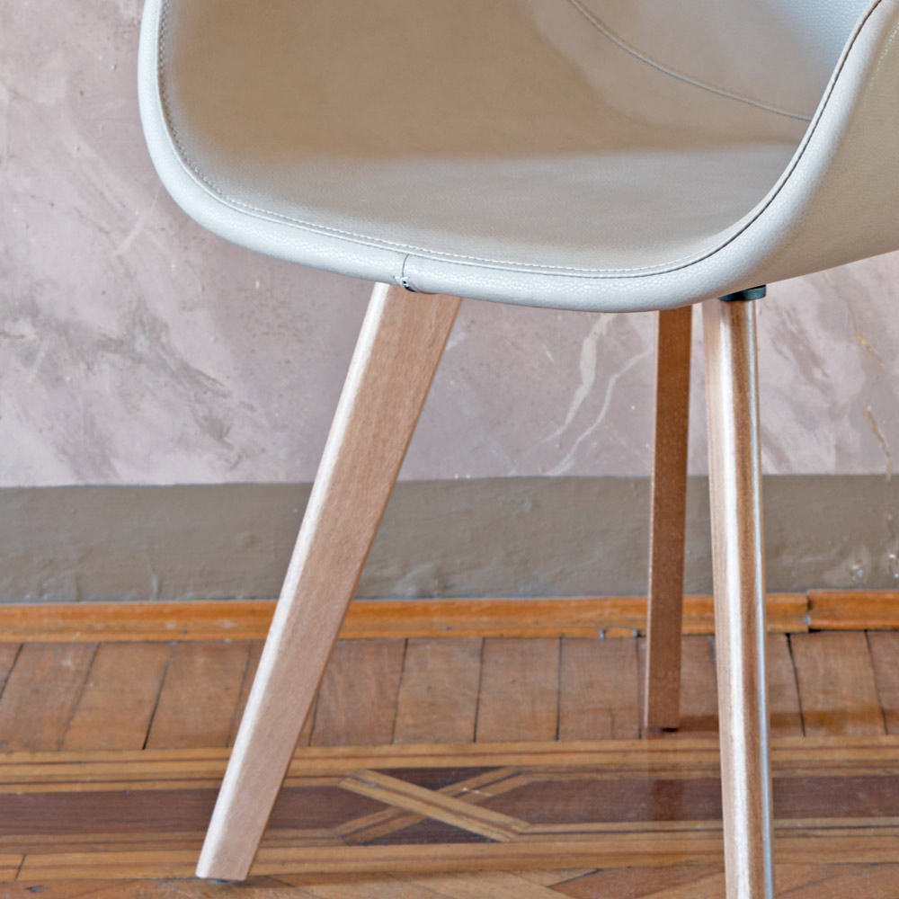 Uwaga: krzesło jest dostępne w różnych pokryciach i wykończeniach. Na zamówienie dostępny również z kontrastowym szwem.