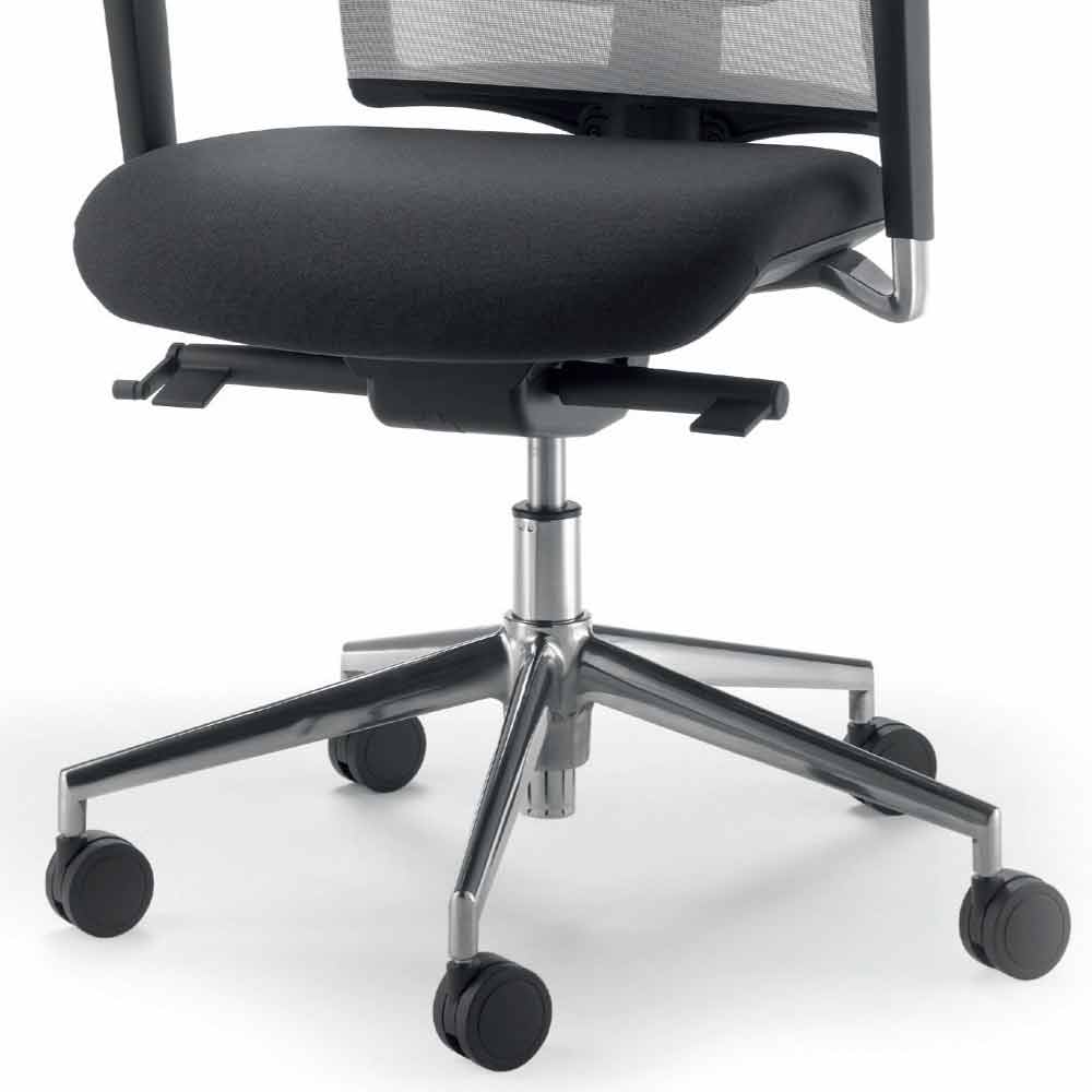 Wewnętrzna konstrukcja siedziska wykonana jest z polipropylenu obciążonego włóknem szklanym o grubości 20% i wzmocnieniami wzdłużnymi ze stali 10x10x1,5, z nadrukiem, z wyściełaną pianką poliuretanową wycinaną z bloku, ognioodporną o gęstości 30 kg / m3 i grubości 40 mm; ponadto wyposażony jest w synchronizowany mechanizm siedzenia / oparcia firmy Mina z dwoma dźwigniami, wykonanymi z odlewanego ciśnieniowo aluminium, z 5 pozycjami blokującymi, systemem bezpieczeństwa oparcia pleców i regulacją napięcia sprężyny do kalibracji oscylacji za pomocą bocznego uchwytu. Odchylenie oparcia 22 °, nachylenie siedziska 11 °. Mechanizm jest certyfikowany na 24 godziny użytkowania do maksymalnej wagi 150 kg, zgodnie z normą BS 5459: Part 2/2000.