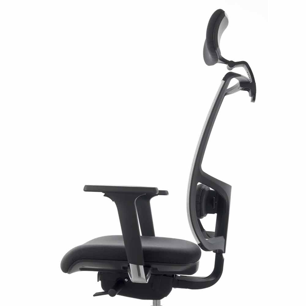 Wyposażony jest również w zagłówek nośny wykonany z 15% poliamidu PA6 z włóknem szklanym, w kolorze czarnym, regulowany na wysokość i głębokość w celu znalezienia najlepszej pozycji, w komplecie z ognioodporną i powlekaną pianką poliuretanową.