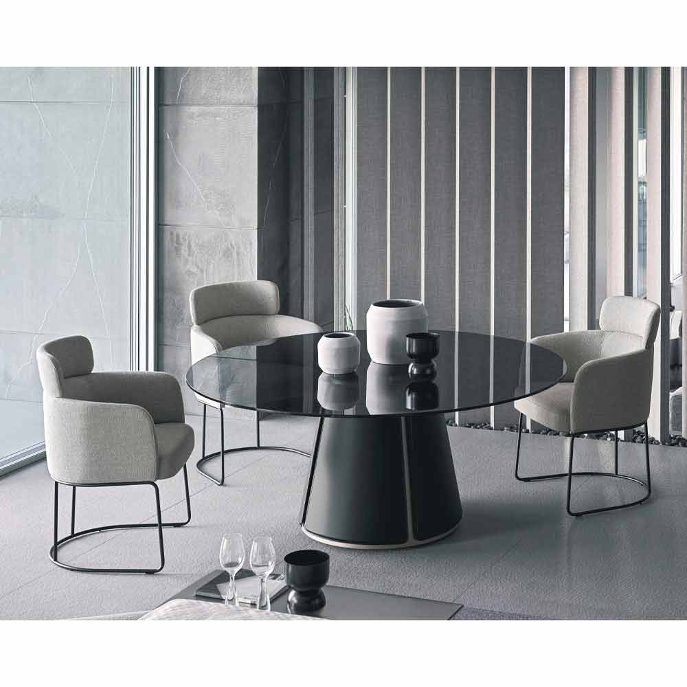 tkaniną (nieusuwalna). Miękkie i otulające kształty nadają życiu szczególnie nowoczesnemu i ekskluzywnemu rozwiązaniu wyposażenia. Dzięki zakrzywionemu kształtowi ciało odtwarza uczucie prawdziwego przytulenia, ożywiając małe gniazdo, w którym można się rozpieszczać i odpoczywać, aby spędzić wspaniałe chwile podczas obiadów i kolacji z przyjaciółmi.