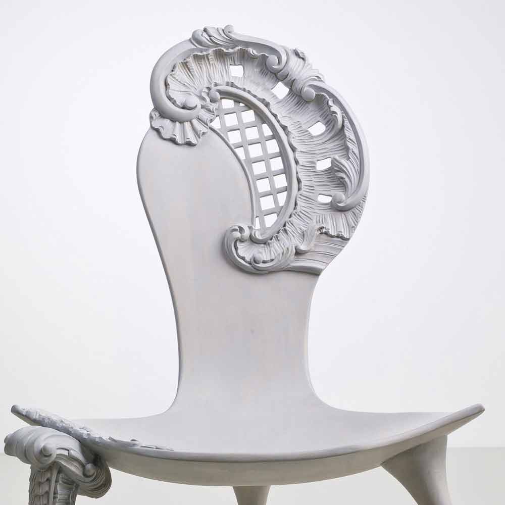 Leon jest ręcznie rzeźbionym tronem z litego drewna, z barokową dekoracją i solidnym drewnianym siedziskiem.