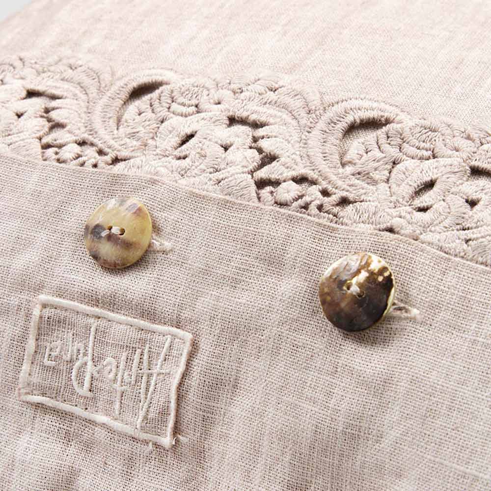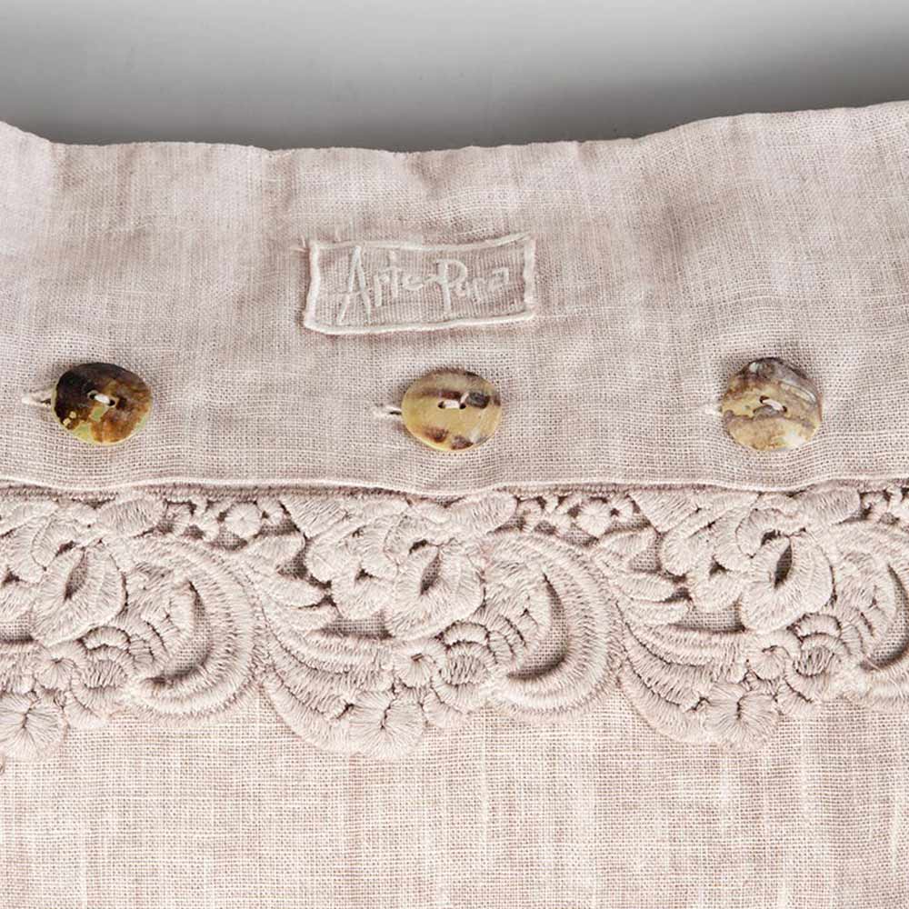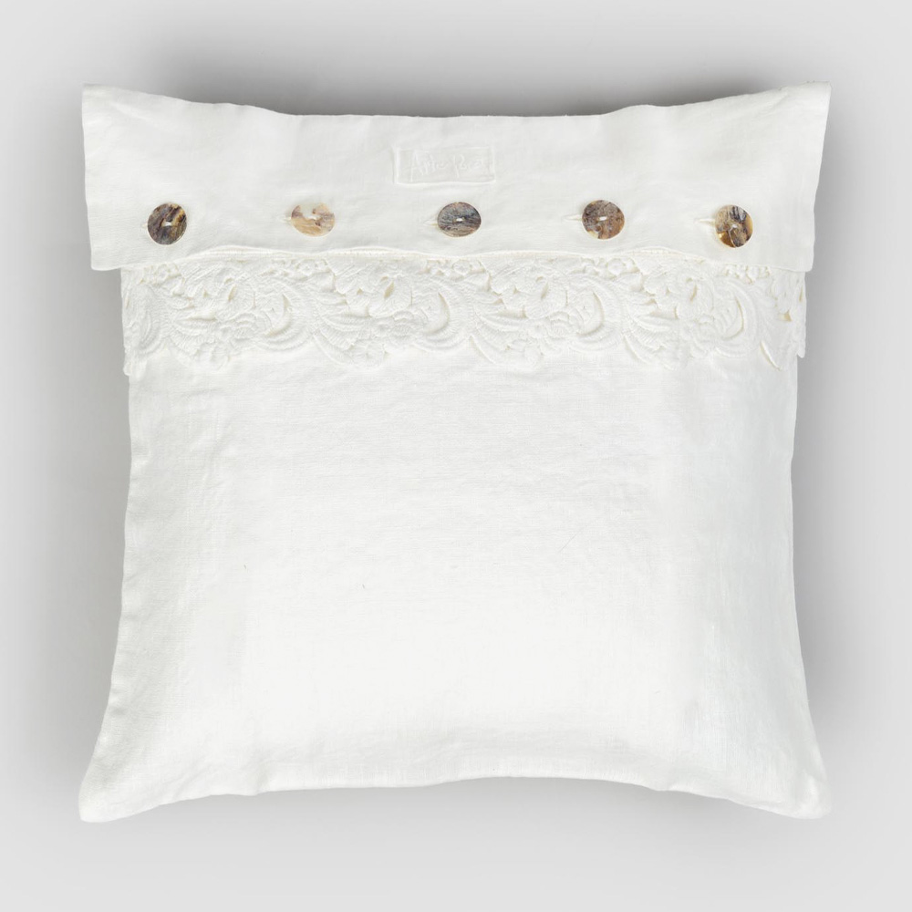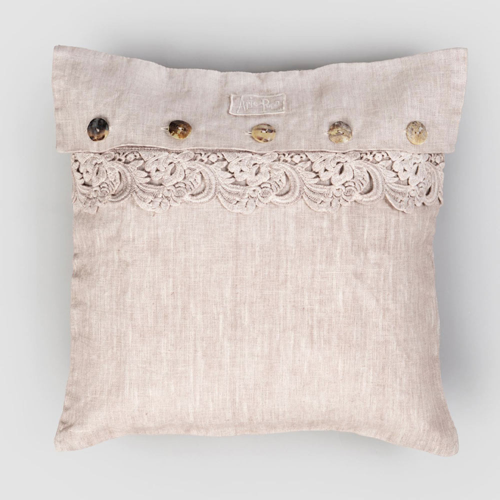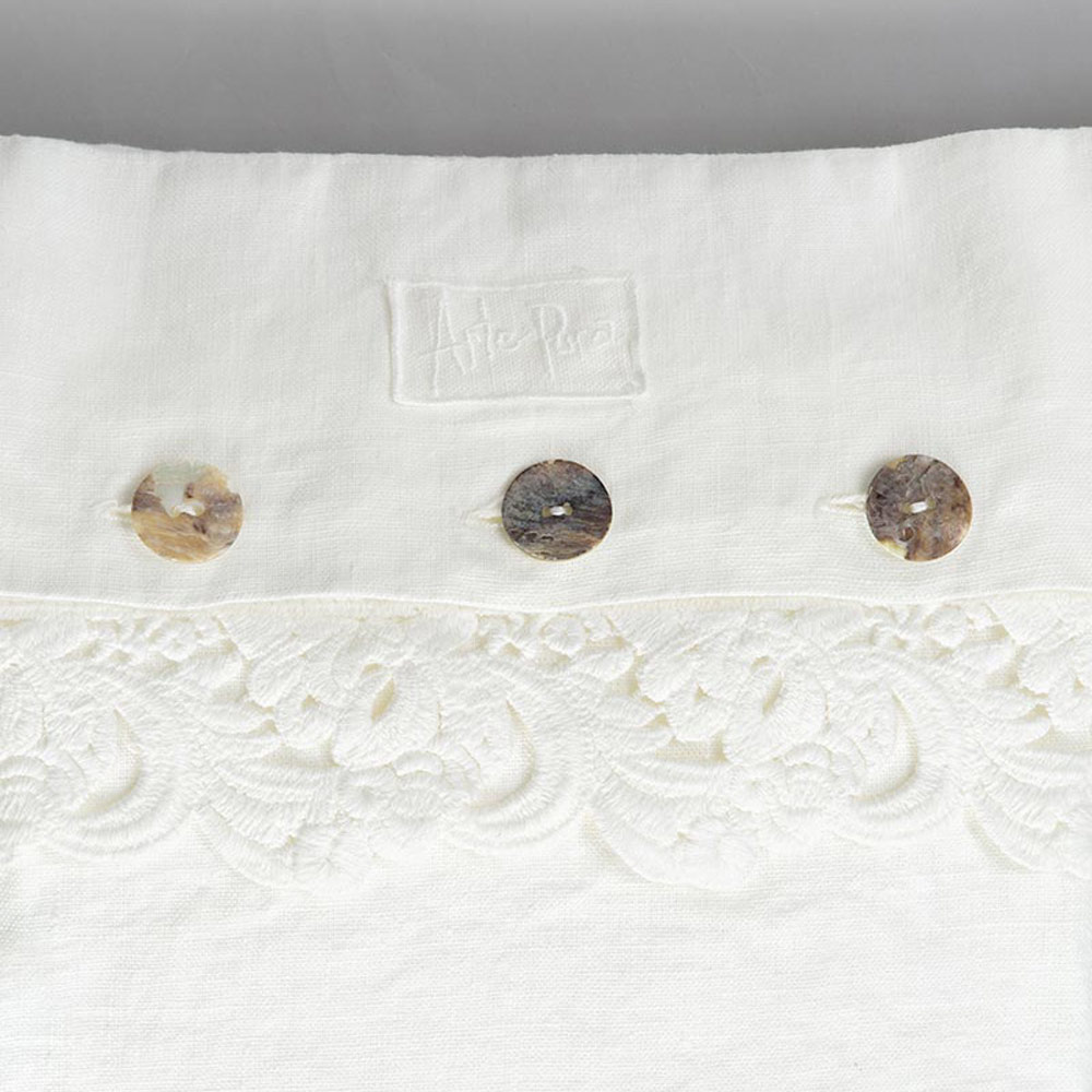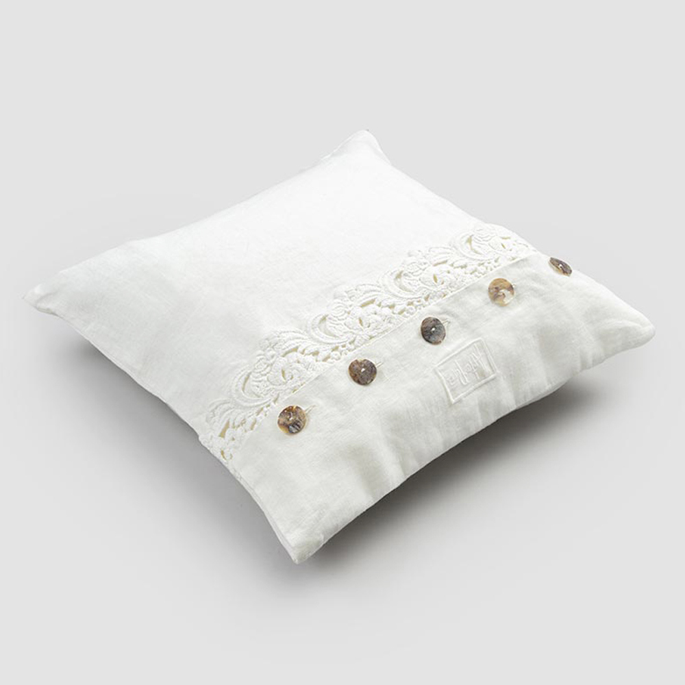 Kwadratowa poszewka z czystego lnu z harmonijną koronką i guzikami z patką, 2 kolory wyprodukowane we Włoszech.